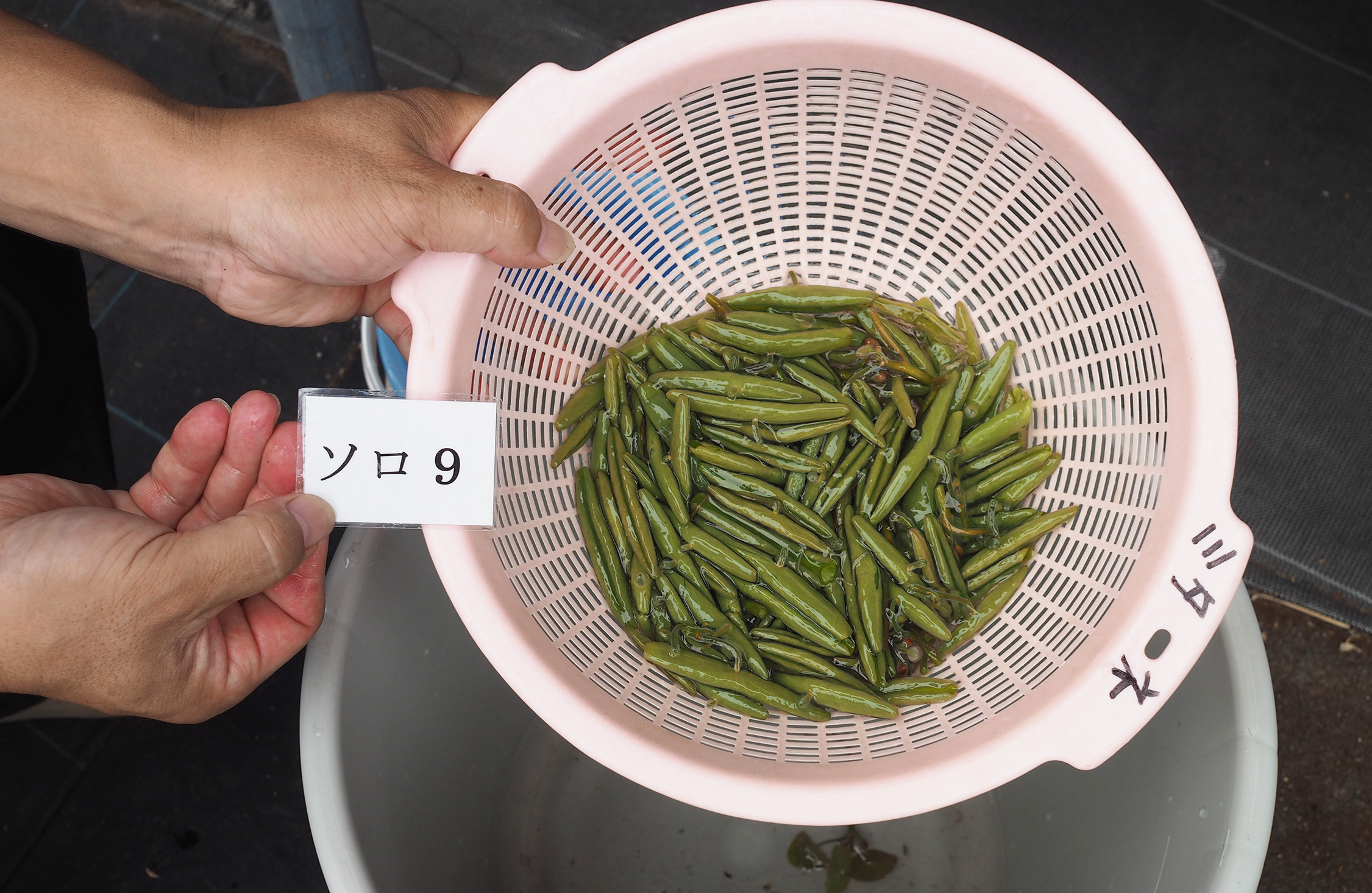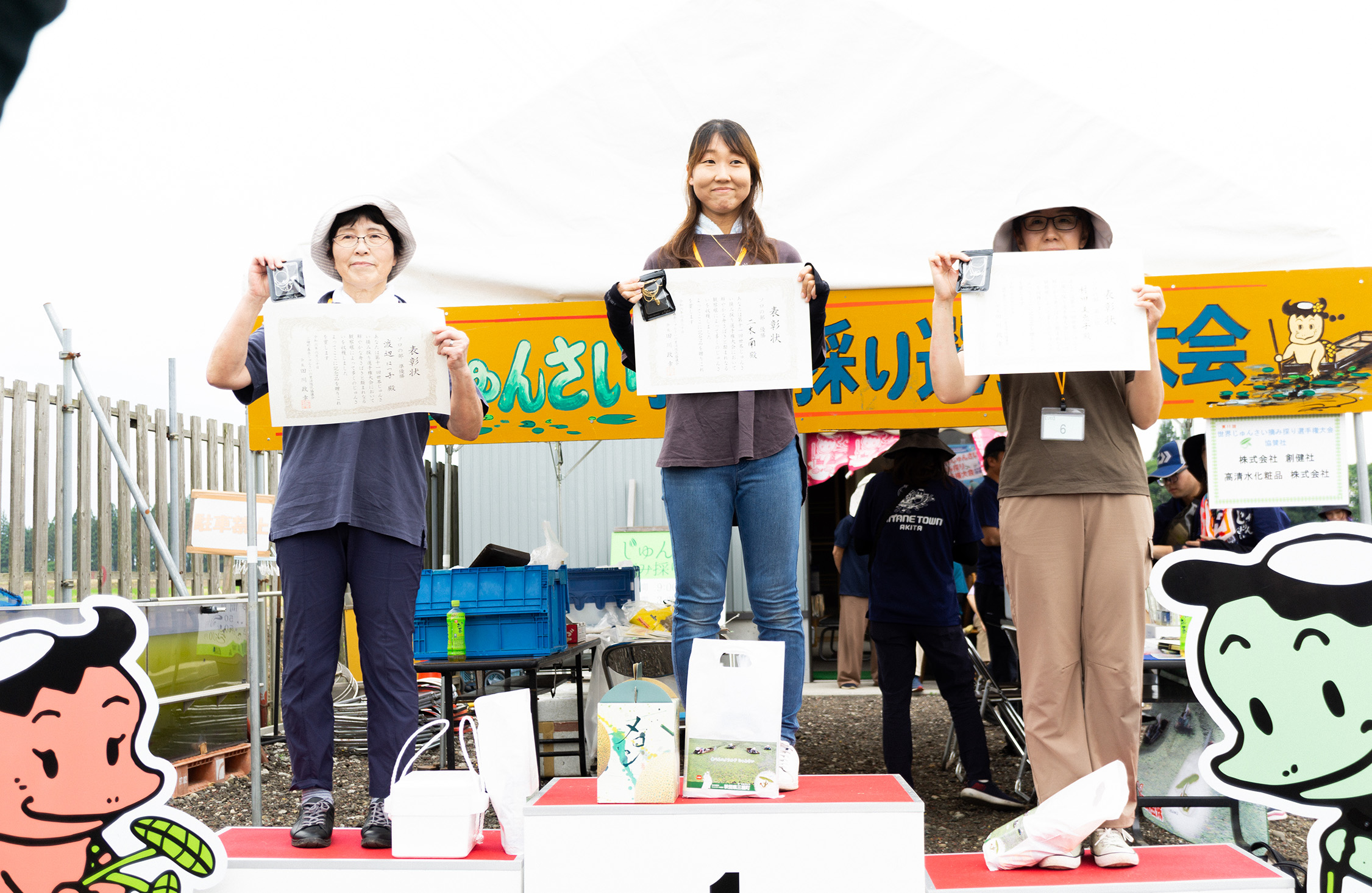その記録を聞いて、のけぞった。2034グラム! 1時間で2キロを超えるじゅんさいを摘み採っていたのだ! それがどれだけすごいかというと、ペアの部の3位、2位の記録を上回り、優勝者の2251グラムとほぼ同量。ふたりで採るのと変わらぬスピード感と指先の感覚は、想像もつかない。2回出場して2度優勝。二木さんはもはやレジェンドと言っていいだろう。