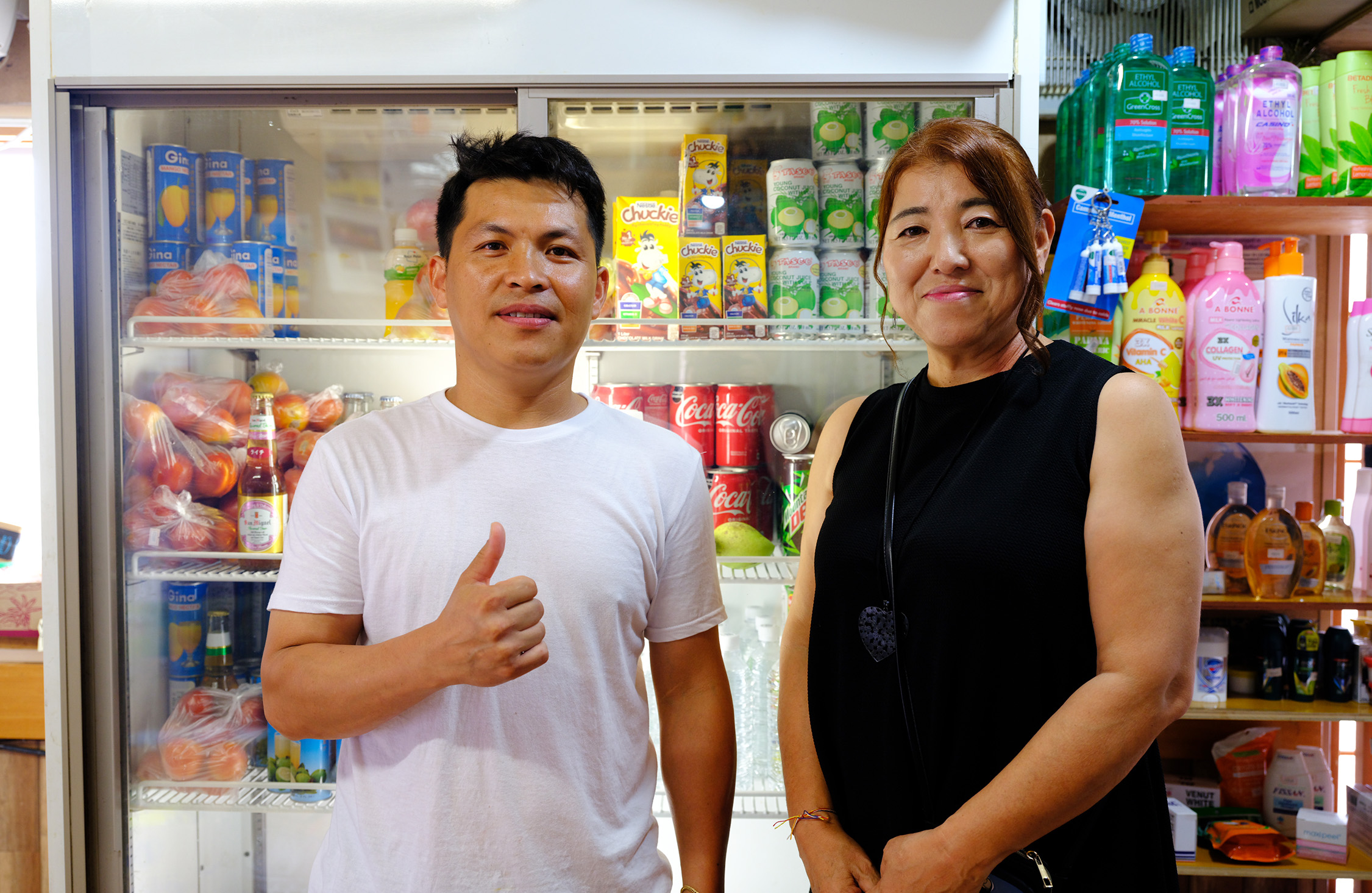 亀仙人街にはもう一軒の雑貨屋がある。「リムエルストア&3KINGSレストラン」を営むフィリピン人のリムエルさんの店だ。ここも小笠原さんの顔馴染みの場所だ。