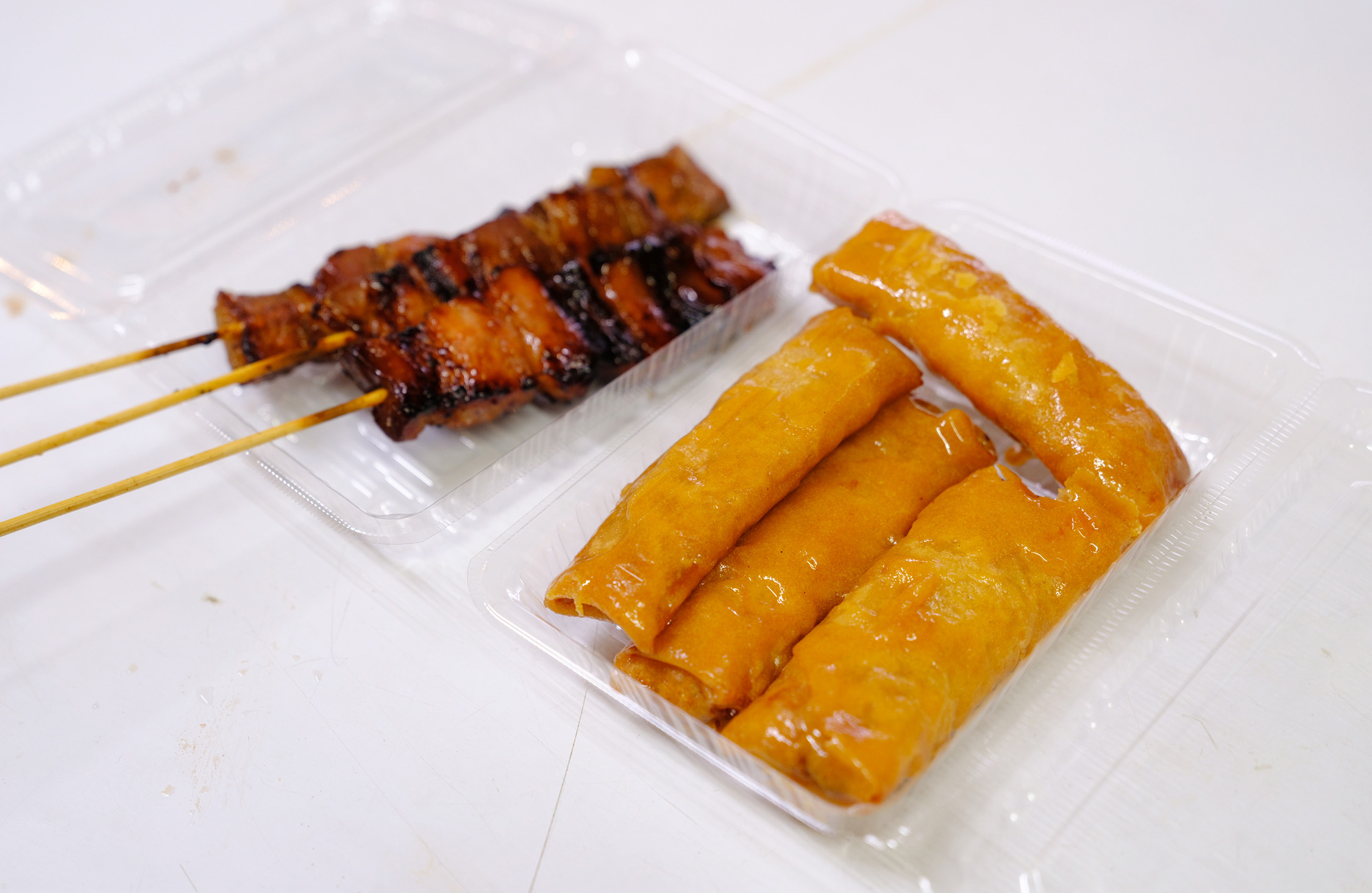 そして「食べてみて!」と、BBQ串とバナナのお菓子をいただいた。