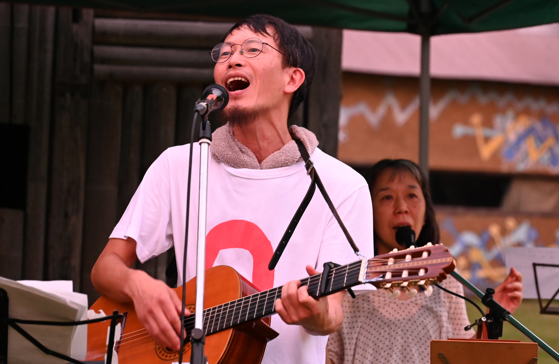 「どうらく音頭」の作曲者、ささきりょうたさんは「人間も含めたここのつながりと、それを通じて有機的に形を変えていくなにかがここにはあって、それがここ(読書の森)の作品なんだと思っている」と語る。