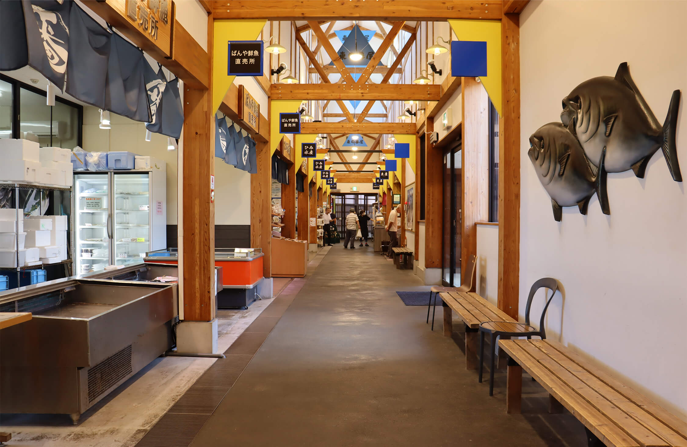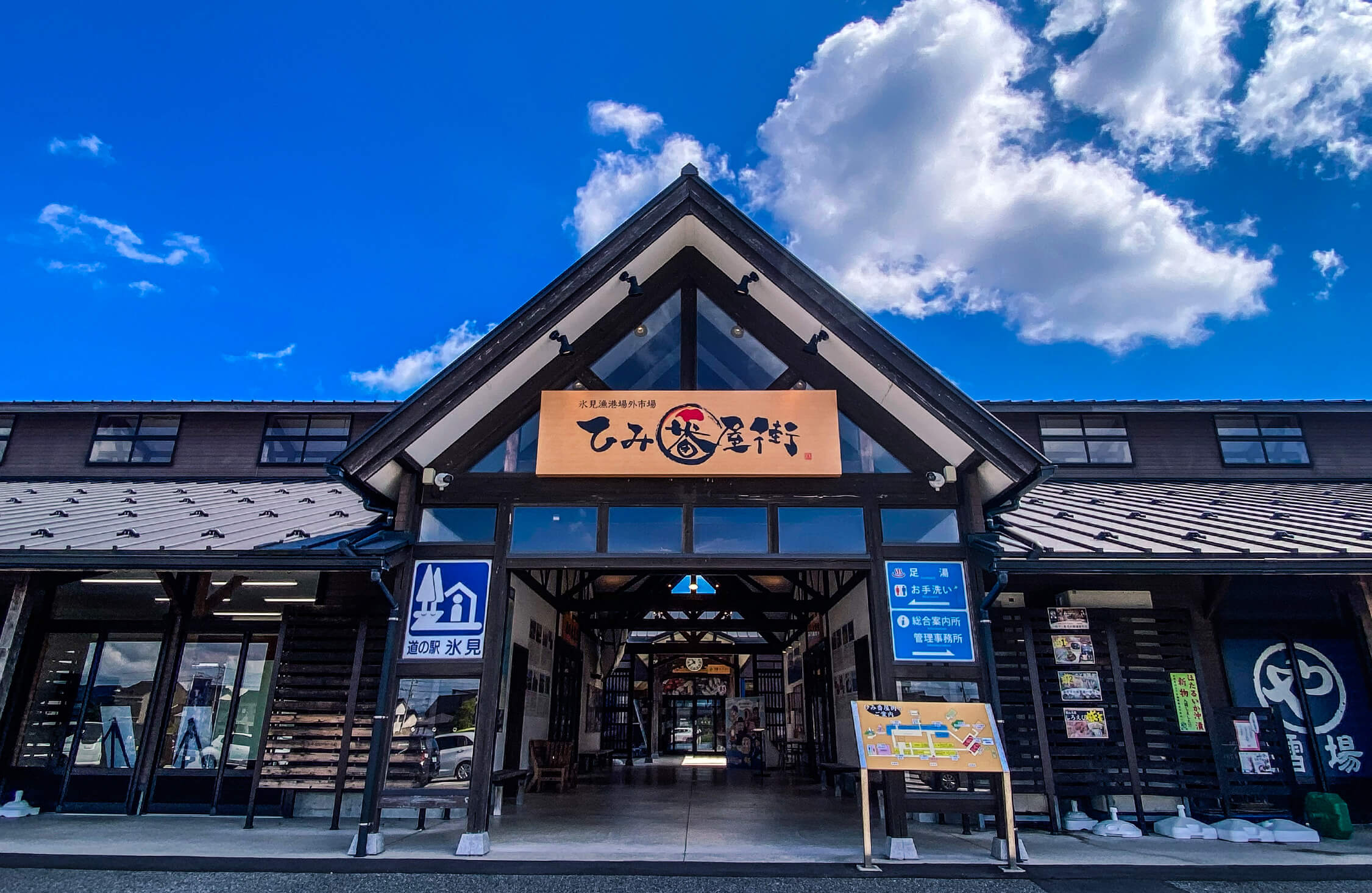 訪ねたのは、富山湾に面した道の駅「氷見漁港場外市場ひみ番屋街」(以下、ひみ番屋街)。風が運ぶ潮の匂いが心地良い。漁師の作業小屋である番屋をイメージして設計されたという建物のなかには、小さなお店が軒を連ねている。