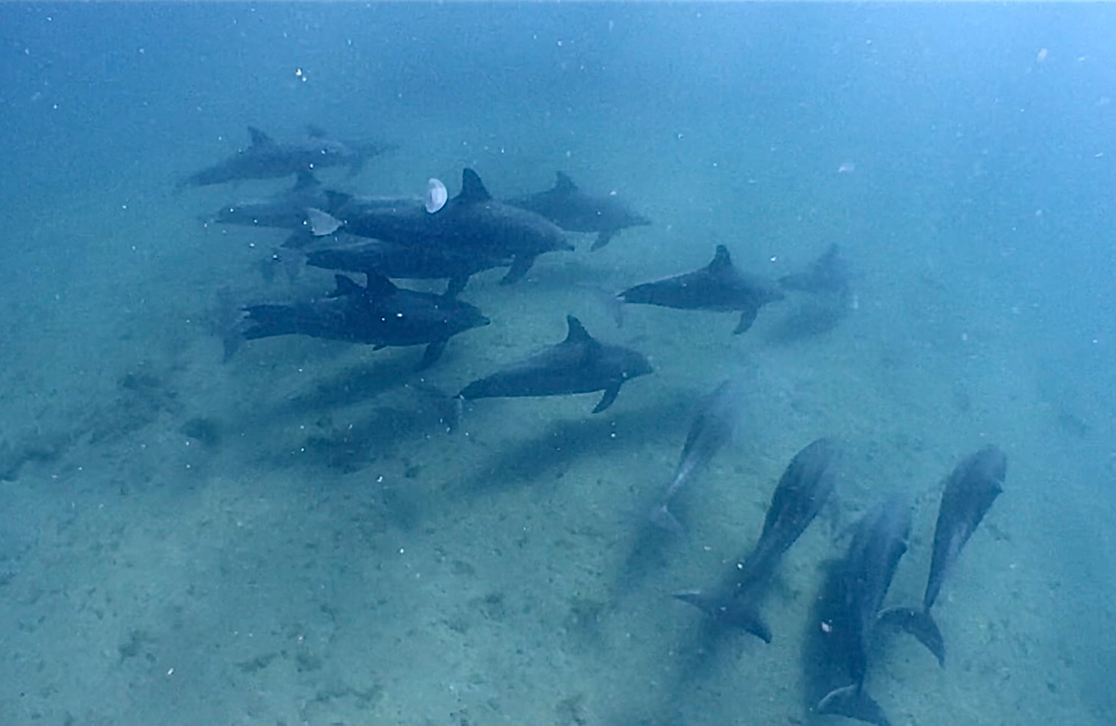 イルカの群れは、10分間ほど参加者のまわりを行ったり来たりしていたが、ぱたりと姿が見えなくなった。移動したようだ。