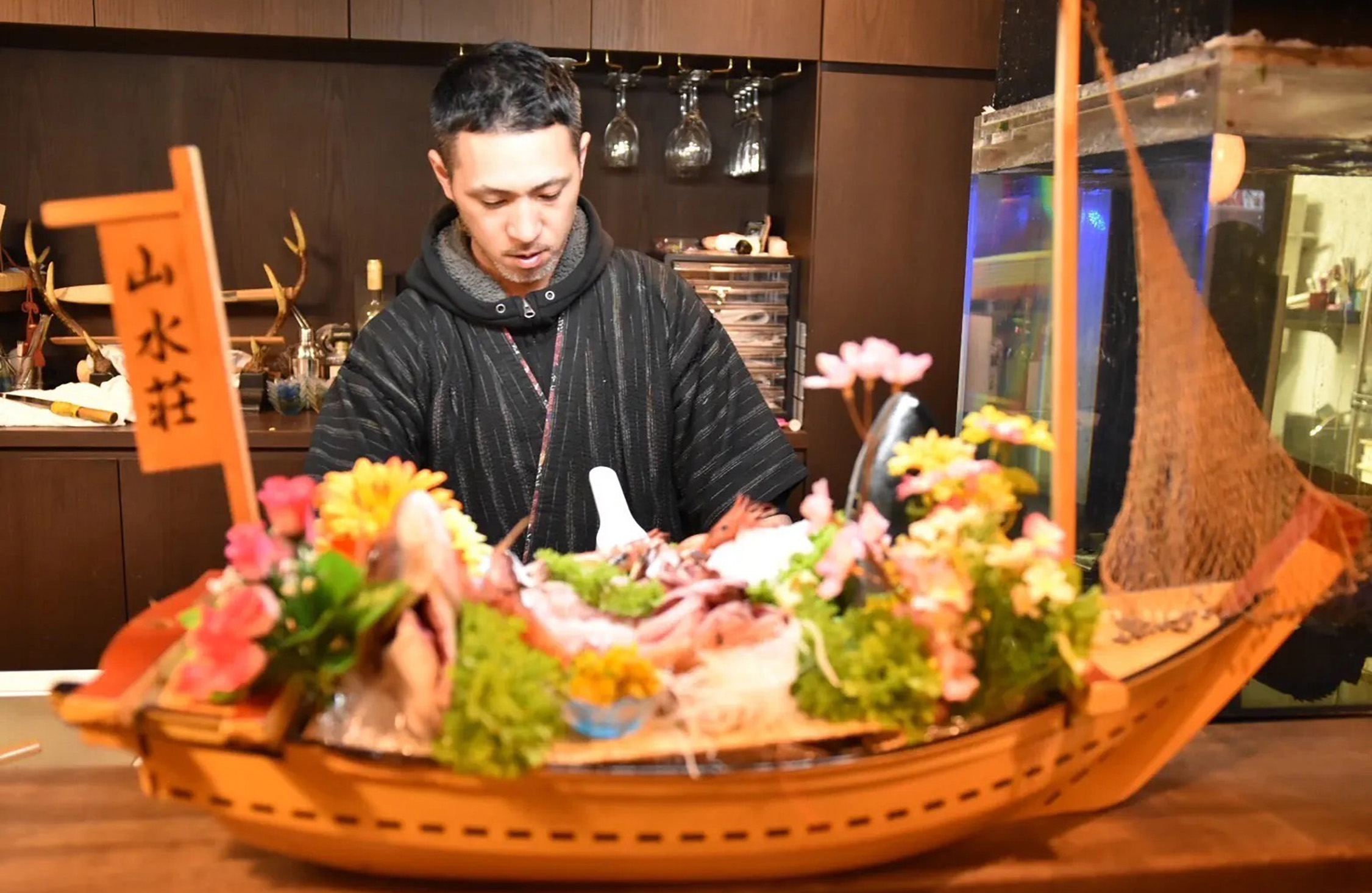 山水荘は、1日最大25名が宿泊できる民宿だ。舟盛りがドカンとでるなど料理が豪華で、居心地の良い宿としてリピーターが増えていった。平日でも予約が取れないときもあったという。近隣住民がお手伝いとして働きに来てくれたほか、住み込みで働く従業員も常時2~3人いた。常に来客を迎え忙しい日々を過ごしていた。