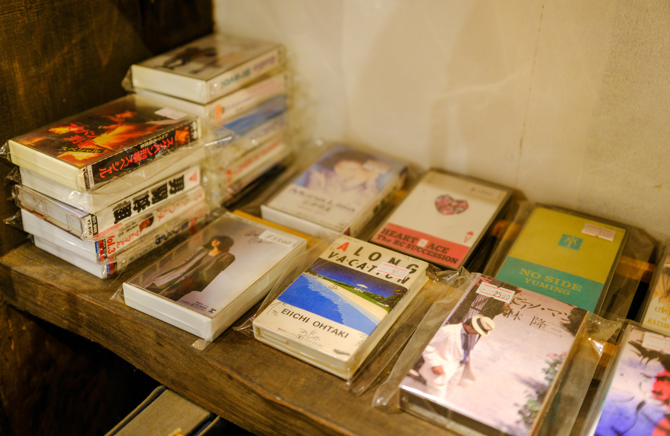 ドアを開けると、ヒップホップだろうか、私にはよくわからないけど、でもなんだかカッコいい! という感じの洋楽が流れていた。小さな店内にはレコードがぎっしり。さらに見回すとCD、カセット、本やおもちゃなども所狭しと並んでいる。店の奥のカウンターにはターンテーブルが置いてあり、その向こう側にキャップをかぶった男性がいた。オーナーの岡崎直人さんだ。
