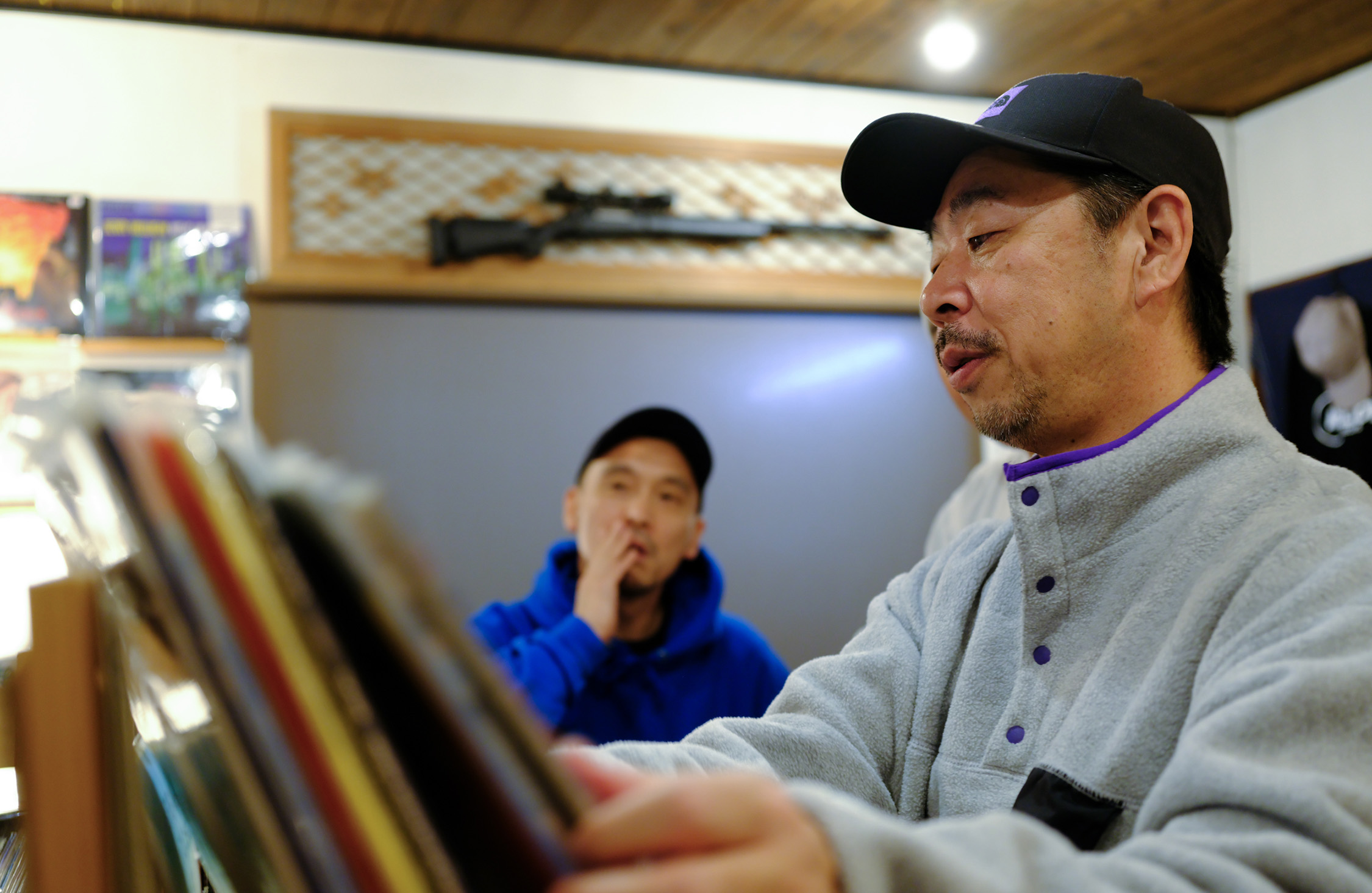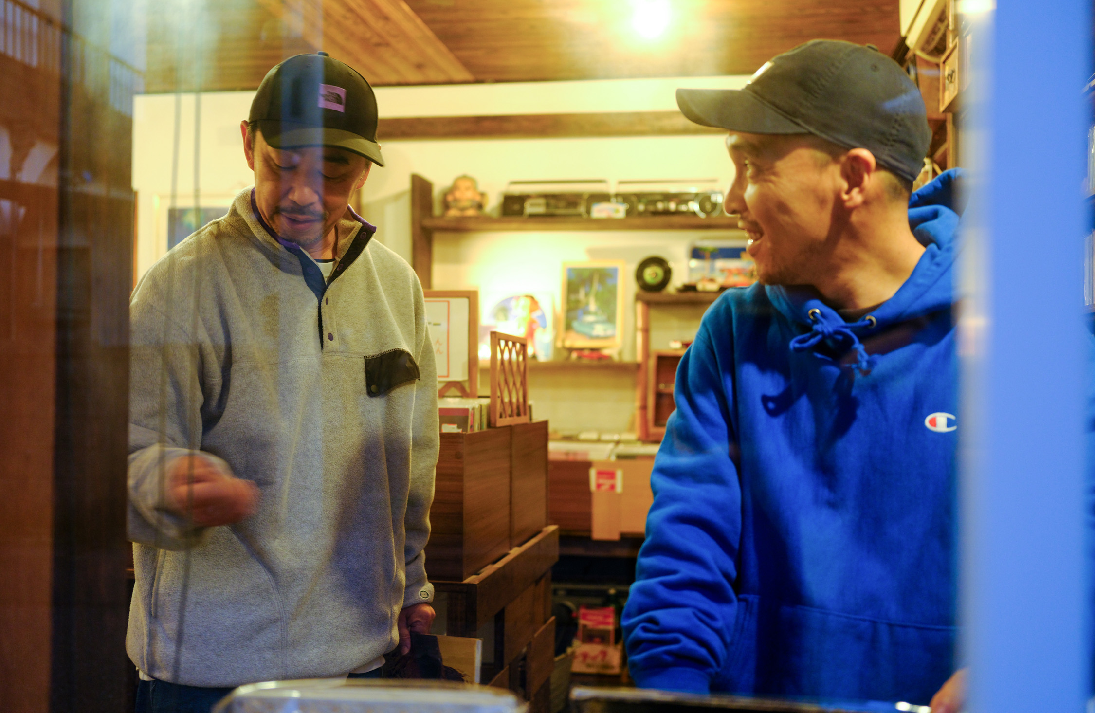 「湖口さんはもうお客さんというより、仲間ですよ。一緒にレコードを探しに行ったり、飯食いに行ったり、地元のイベントでDJしたり」と話す岡崎さんに、湖口さんも「たぶん僕がいなかったら、岡崎さんは月曜日に店を開けてない!」と応じて、ふたりは大笑いするのであった。