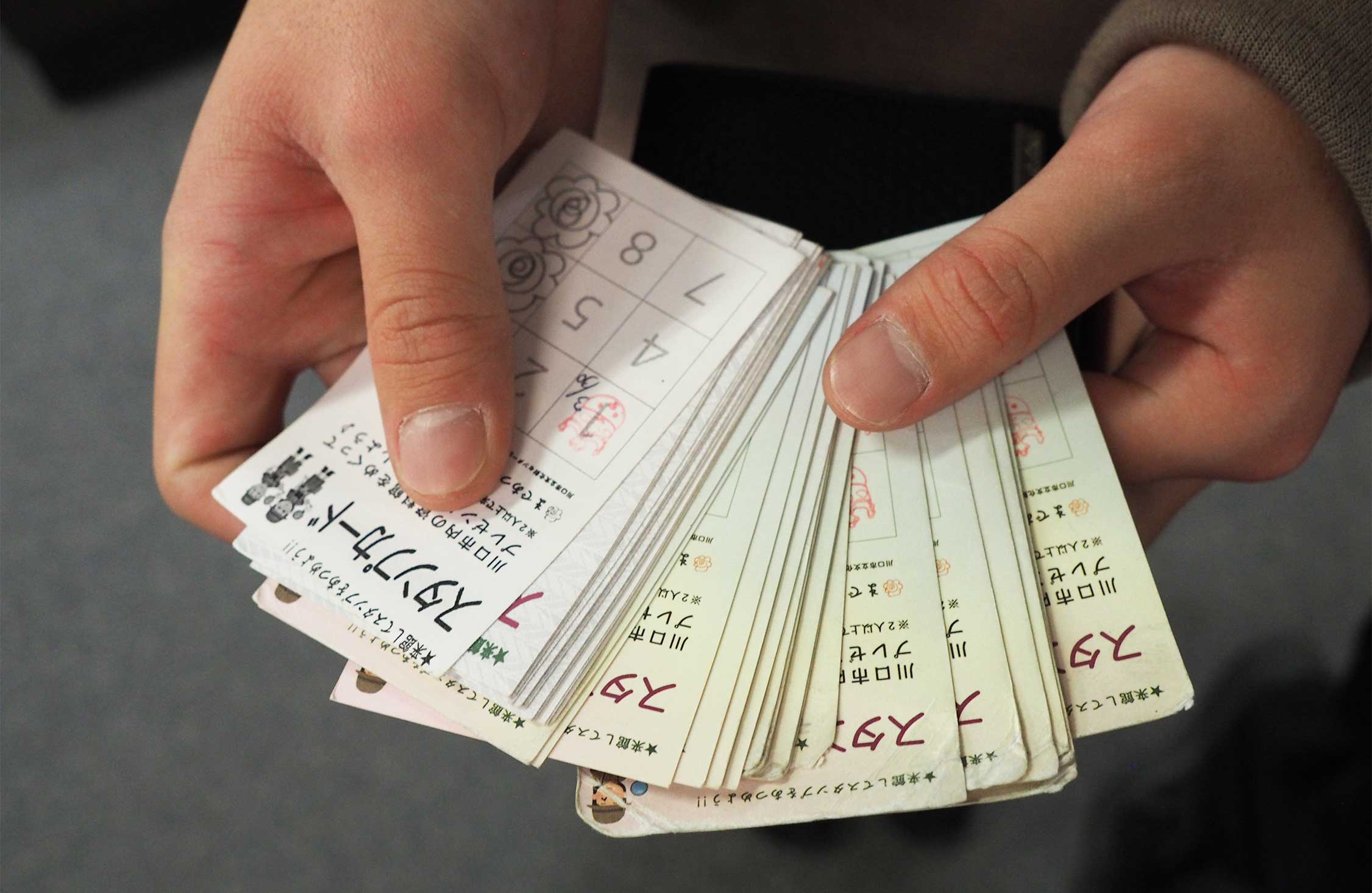 「2年前からベーゴマを始めてから郷土資料館に通いすぎて、ベーゴマを教えるスタッフにしてもらった」という中学1年生の加藤さんは、とんでもない数のスタンプカードを誇らしげに見せてくれた。