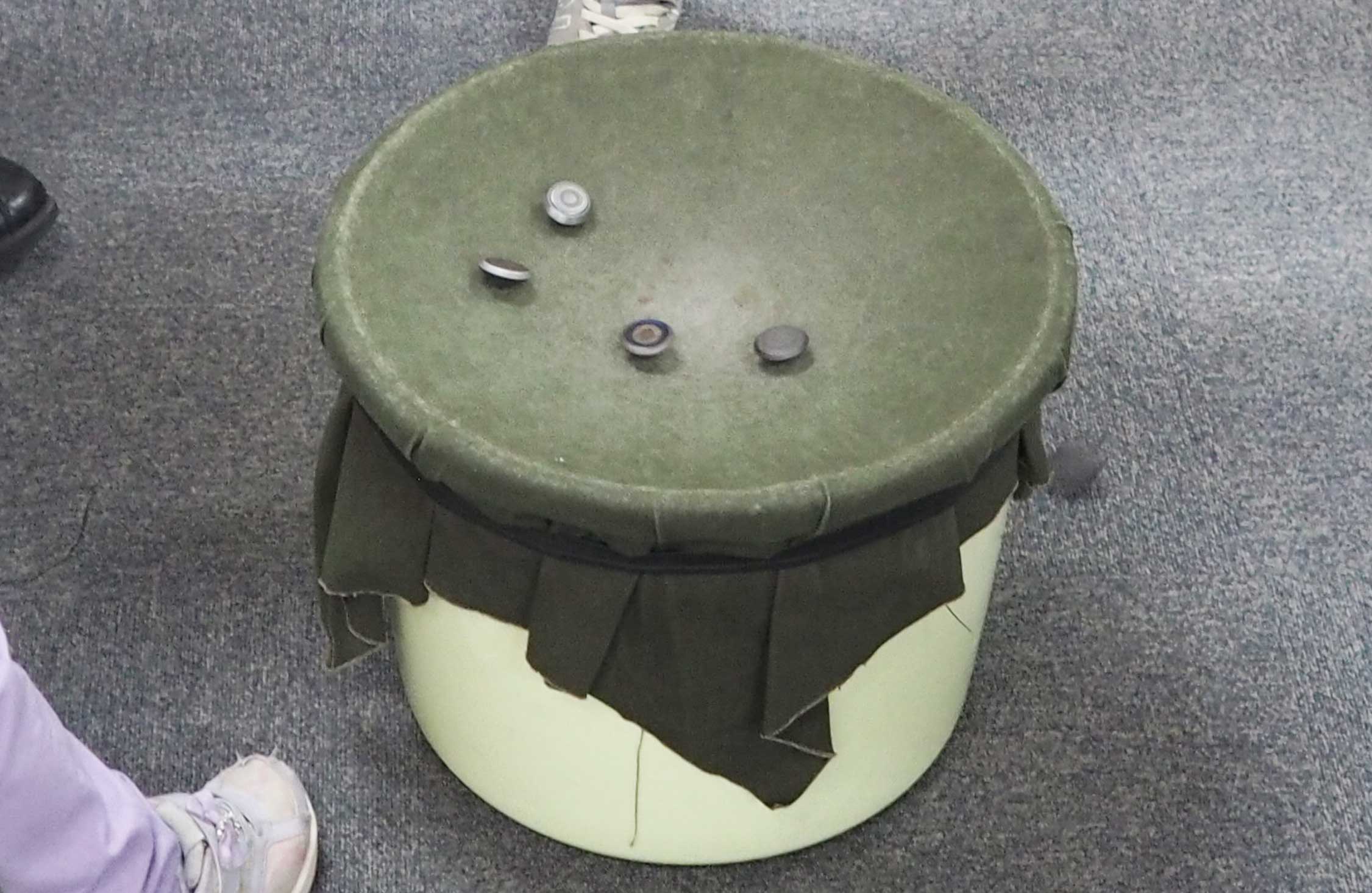 「これ、煙突に入んないわよね」とほほ笑むのは、日本唯一のベーゴマメーカー、日三鋳造所で働く篠原さん。指さした先には、シートが張られた大きな樽があった。ベーゴマをまわす舞台となる「床(とこ)」だ。篠原さんによると、大人でも一抱えもあるこの床(5500円)をクリスマスプレゼントに求めている子どもが、12月初旬の取材時点ですでに3人いるということだった。