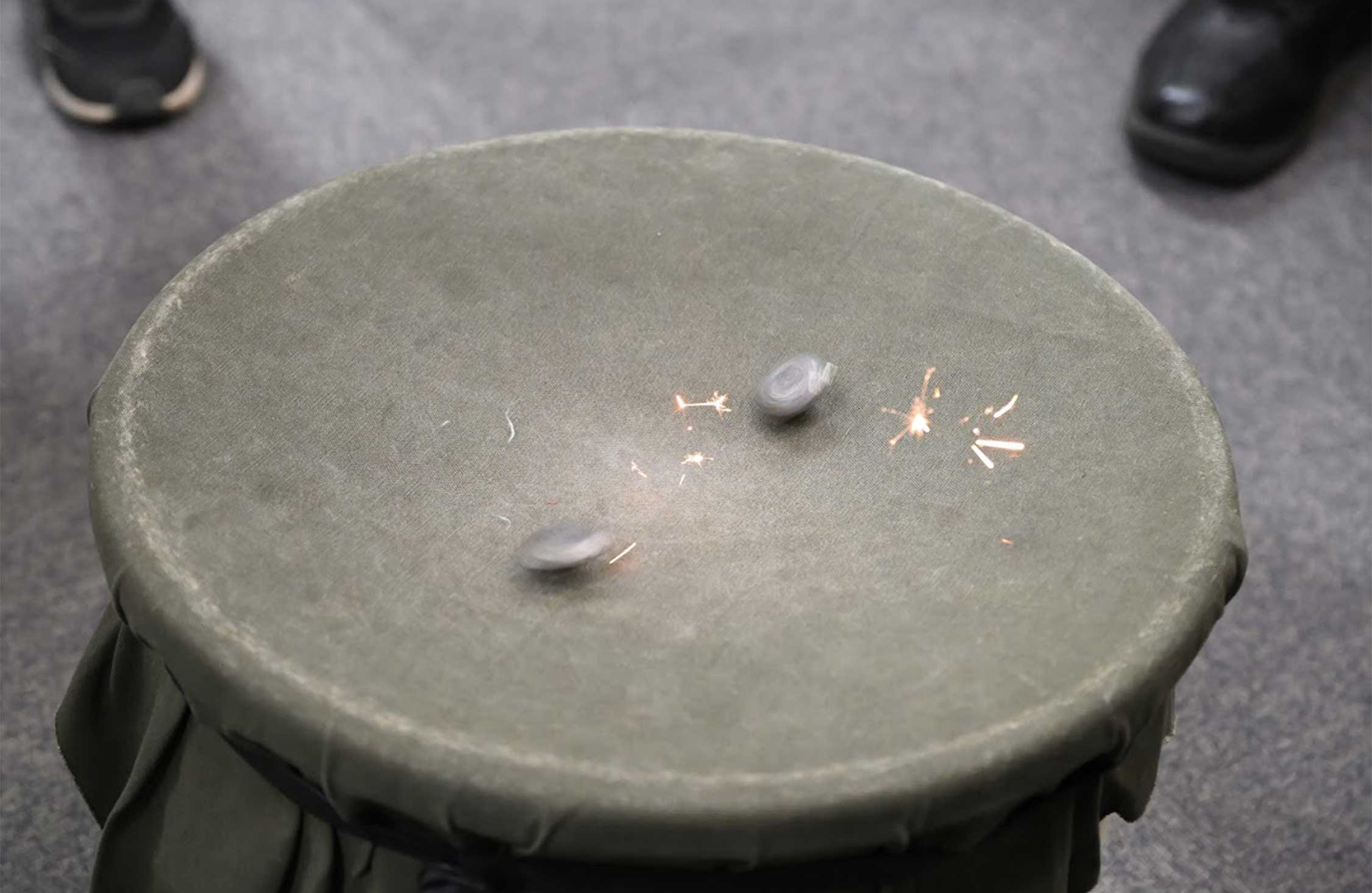 篠原さんにお礼を告げて別れた後、ベーゴマ販売店から徒歩30秒ほどの距離にある川口市郷土資料館を訪ねた。ベーゴマブームの震源地と呼ばれているそこで、僕は火花を見た。比喩ではない。激しく回転するベーゴマとベーゴマがカチッとぶつかり合った瞬間に飛び散る火花を目にしたのだ。目にもとまらぬ手さばきでベーゴマを投げ入れ、その火花を見せてくれた郷土資料館職員の井出祐史さんとベーゴマ名人の中島茂芳さんが、ブームの火付け役。