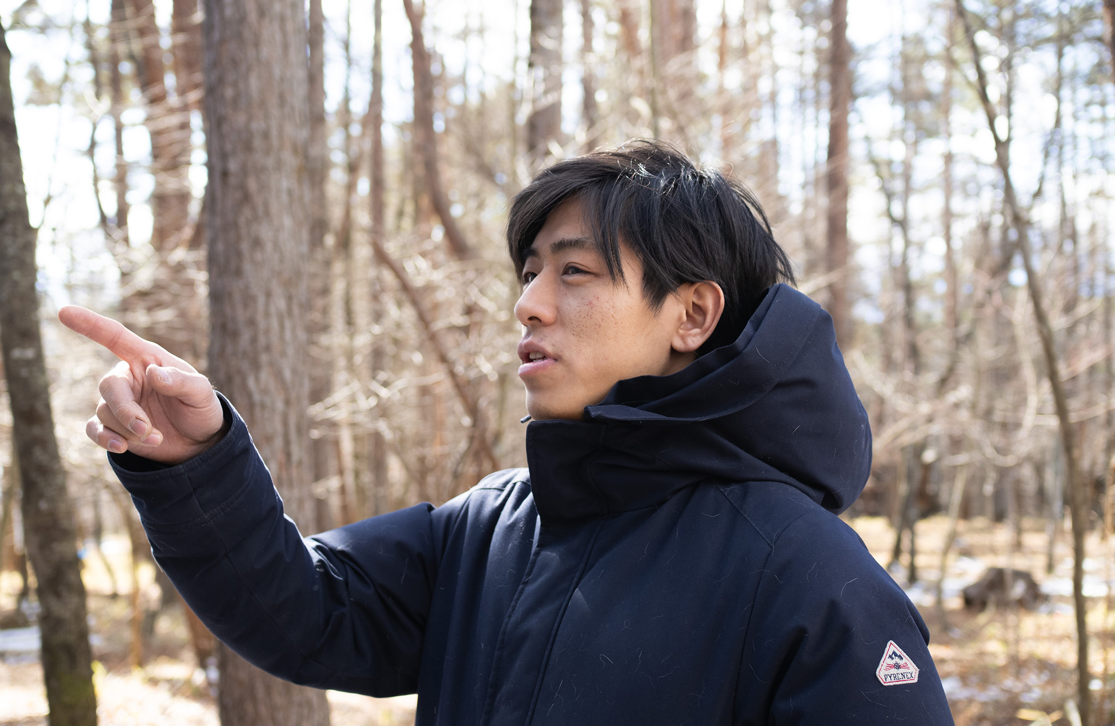 車を降りると、うっすらと雪が積もった地面がザクリと音を立てた。「八ヶ岳は寒いですね」と震えると、意外にもこのあたりは雪が降りにくく今シーズンでは初めての雪だと、前を歩く菱沼乾さんが教えてくれた。