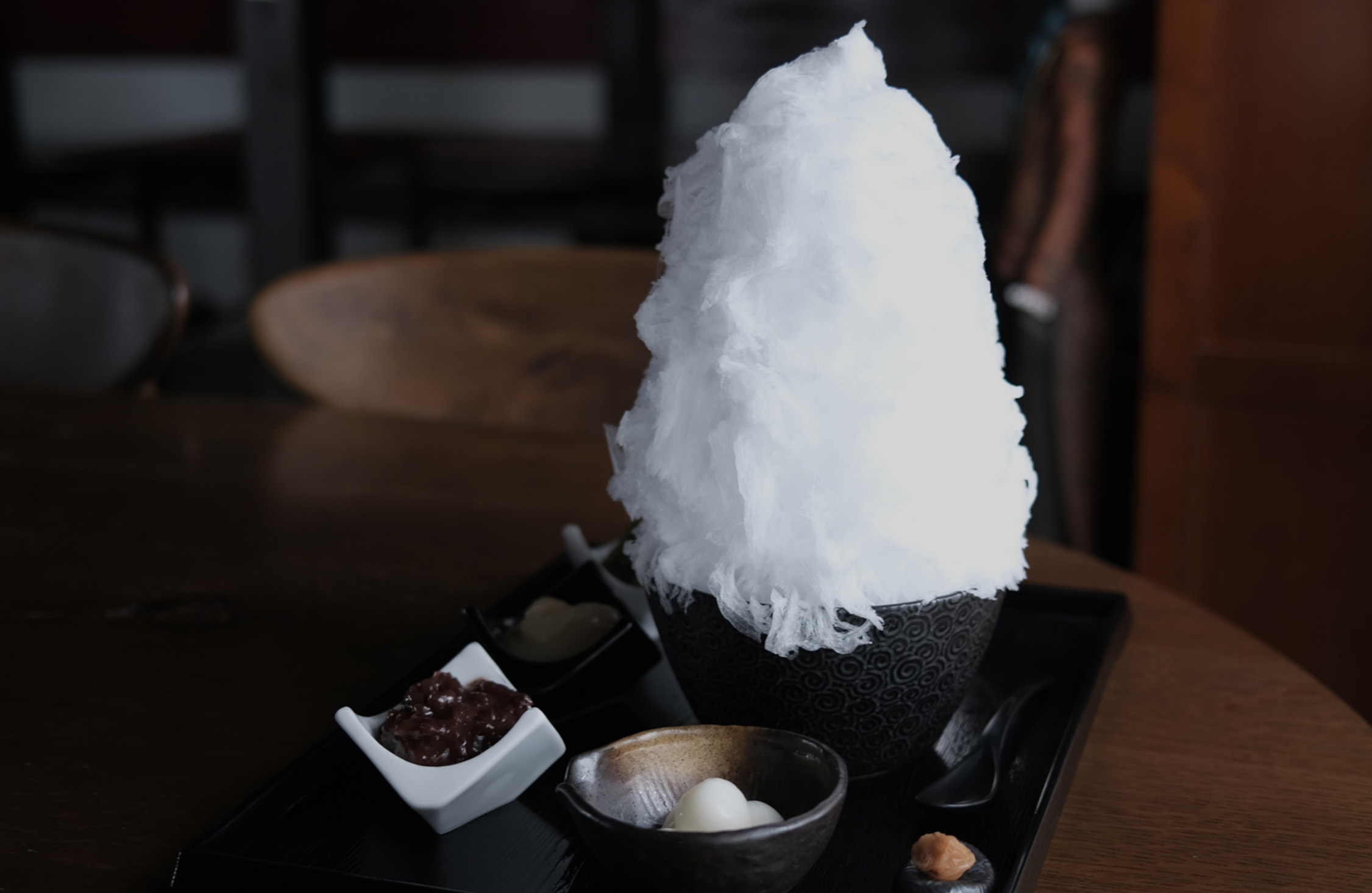 これで謎が解けた! 阿左美冷蔵のかき氷は極薄の布が折り重なっているような、不思議な立体感があった。それは、結晶が大きいから。そして、かき氷を撮影している間、暖房の効いた店内でも雪山のように凛とそびえ立ち、スプーンを差し込んだ時も崩れる気配がなかった。それは、氷自体の硬さが影響していたのだ。