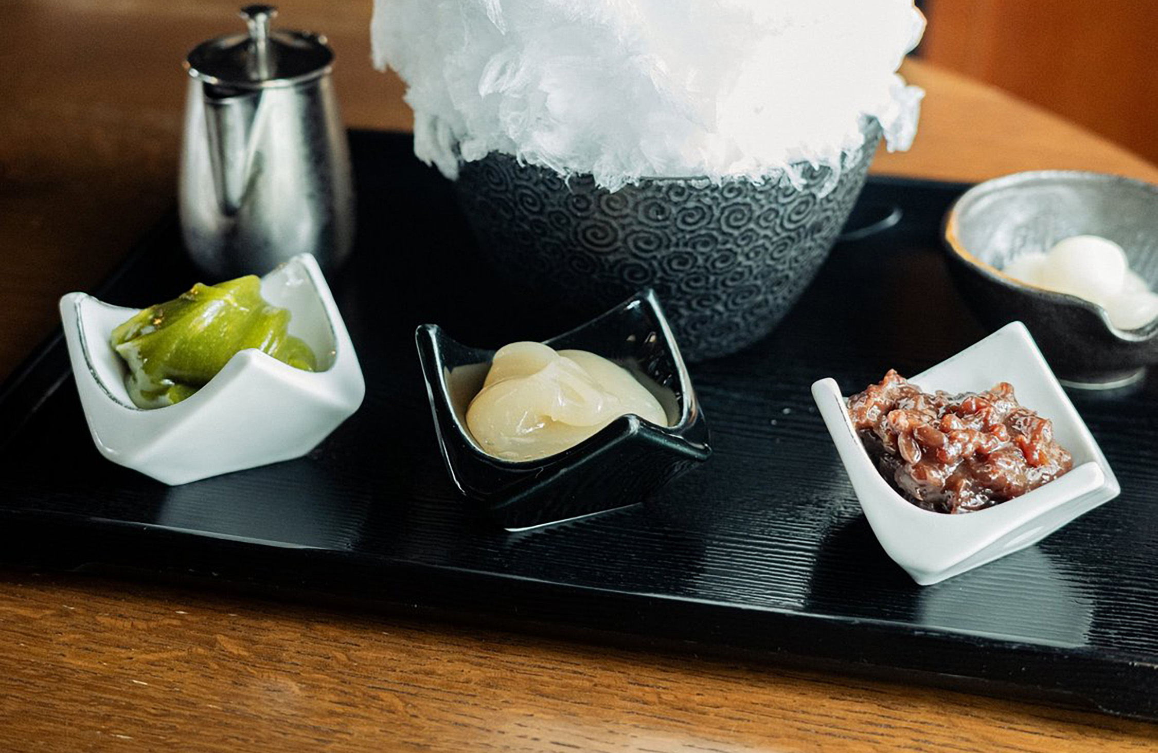 その氷と一緒に、これまで経験したことのない甘みが口のなかで花火のように華やかに広がり、スッと消える。うま味すら感じるのに、口に残るしつこい感じが一切ない。滑らかで絹織物のような食感の天然氷と、濃密さと爽やかさを両立する秘伝みつの相性が抜群で、まるで仲良く手をつないでスキップしているよう。
