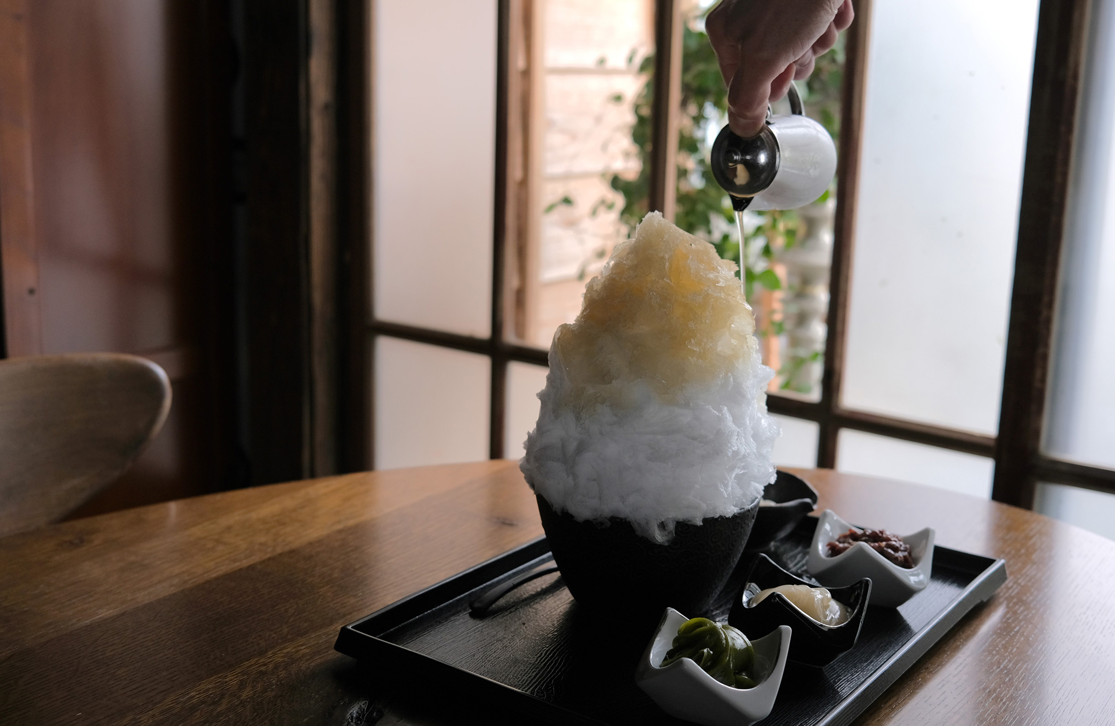 スプーンに載せたかき氷を、一口。その瞬間、瞳孔が開いたと思う。ふんわりまろやかな氷が舌に触れ、しっとりと溶ける。それは祭りで食べる、シャリシャリのかき氷とはまるで違う、新感覚だ。