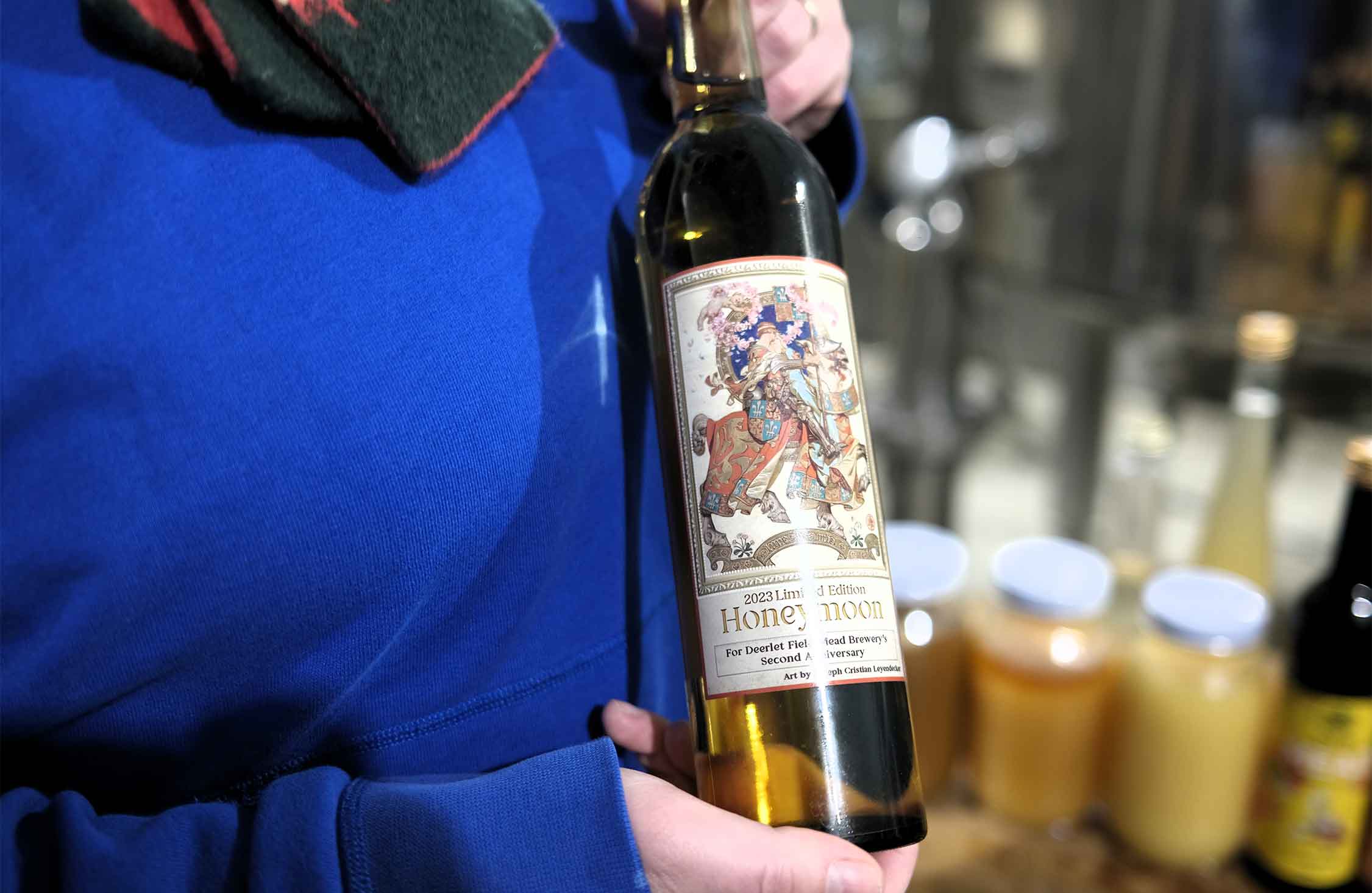 一般の人がミード造り体験をできるのも、気軽にミードを飲んでもらうための試み。ディアレットフィールド醸造所にある蜂蜜を使うか、自分が使いたい蜂蜜を持ち込むと、5リットルのミードを仕込むことができる。発酵期間を経て、1回3万3000円で12本の無濾過のミードが自宅に届く。ミードはハネムーンの語源にもなった縁起の良いお酒として知られており、夫婦で参加したり、友人同士で参加して結婚する友人にプレゼントしたりと、これまで30~40組が体験しているという。