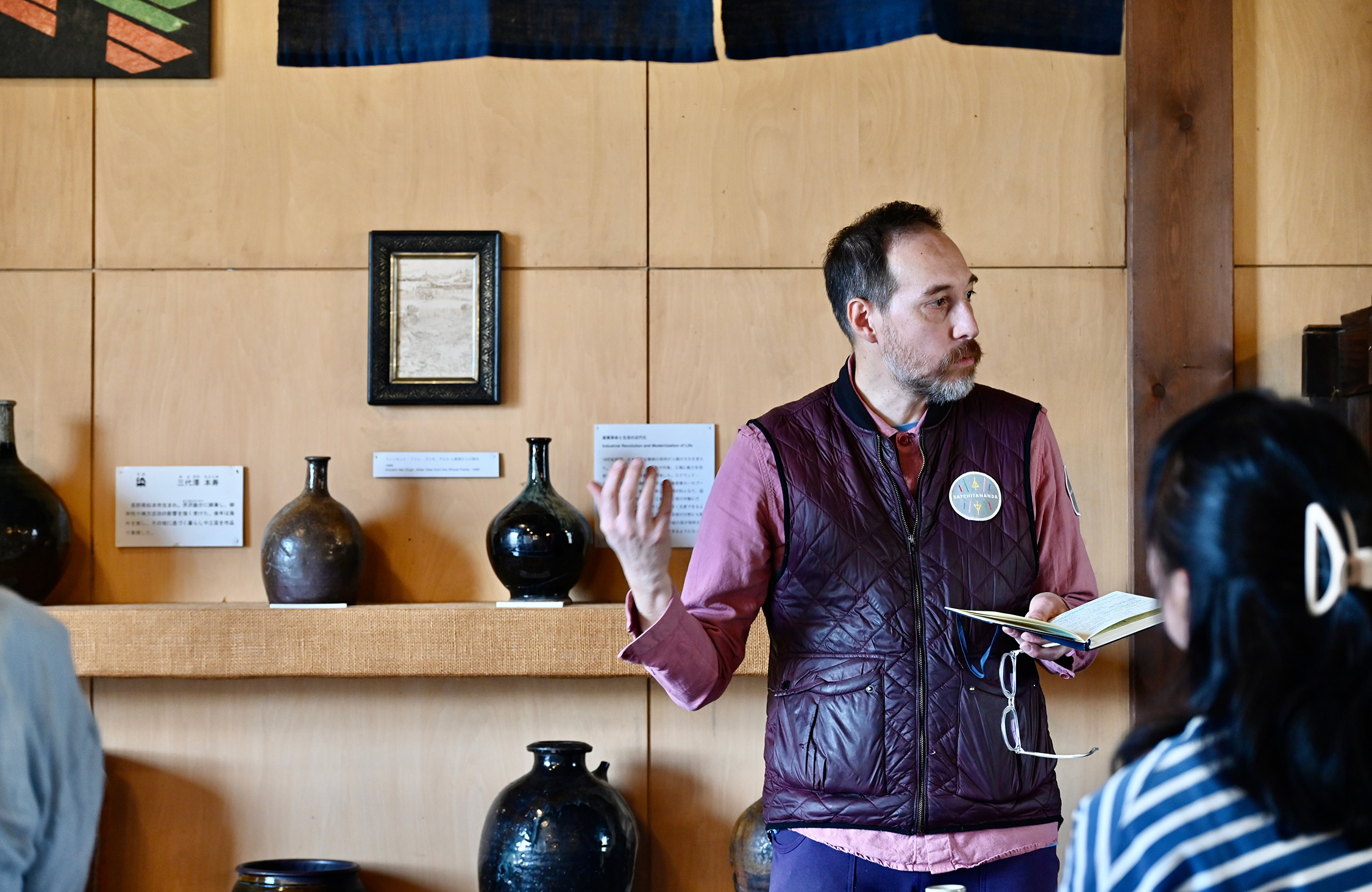 館内には、厳しい労働を優しく描いたミレー、貧しい農民の姿に目を向けたゴッホの作品など、日本の民芸運動と通じる印象派絵画のレプリカがならぶ。ロジャーさんは2022年にはそれまでの実践を「DEEP LOOKING-想像力を蘇らせる深い観察のガイド」という本にまとめ、民芸館でも「深い観察」を実践した。