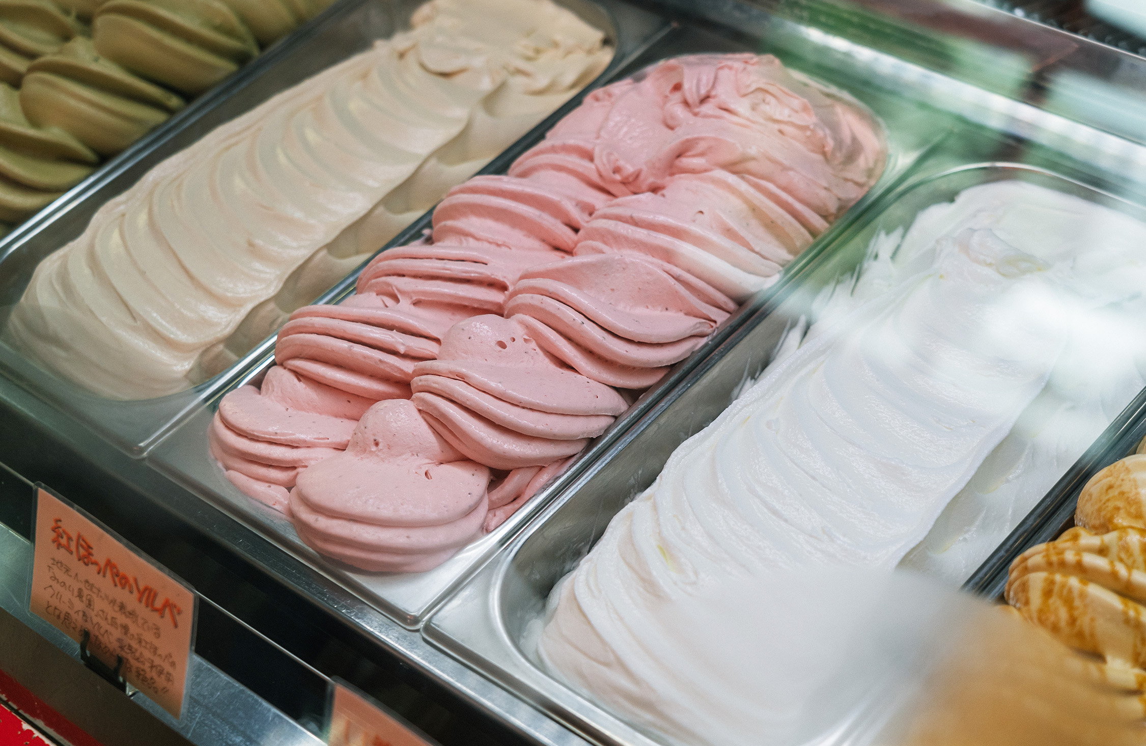 まずは、岡田さんおすすめの紅ほっぺをひと口。甘酸っぱくて、ふわっとなめらかで、口当たりがいい……。食感はまるでソフトクリームだ。でもあと味はさっぱりしていて、もったりとした感じがない。