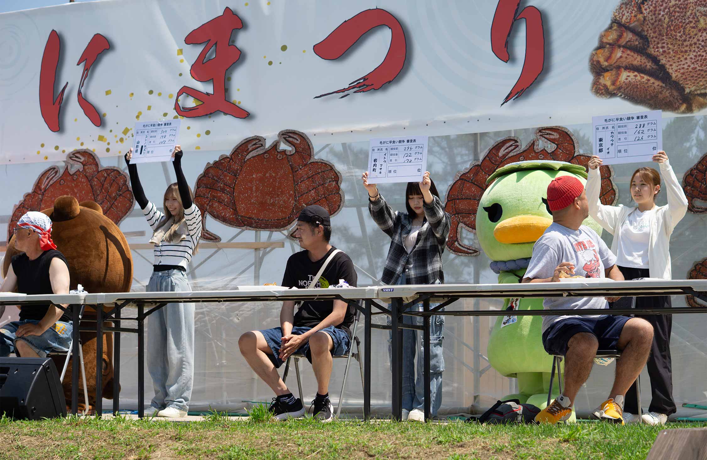 「テッペン取るためにきた」と宣言した自分のふがいなさに、失意というより恥ずかしさを感じる。早食い競争の参加者は食べ残しの毛ガニを持ち帰ることができるので、今度はゆっくり食べながら、その後に行われた2組から6組までの戦いを眺める。
