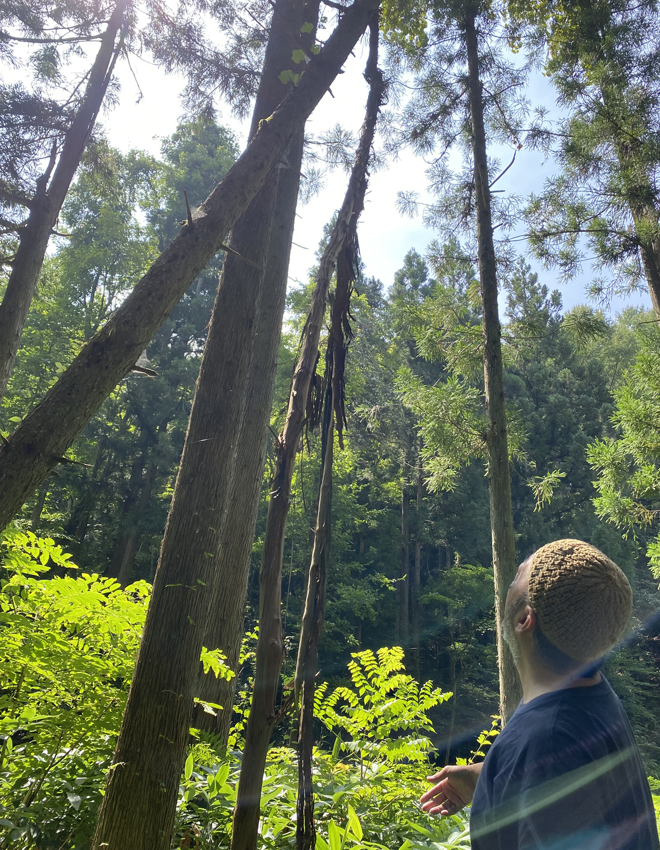 木漏れ日が気持ちよく降り注ぐ森に着くと、直径5~10センチほどの木に絡まる蔓があった。