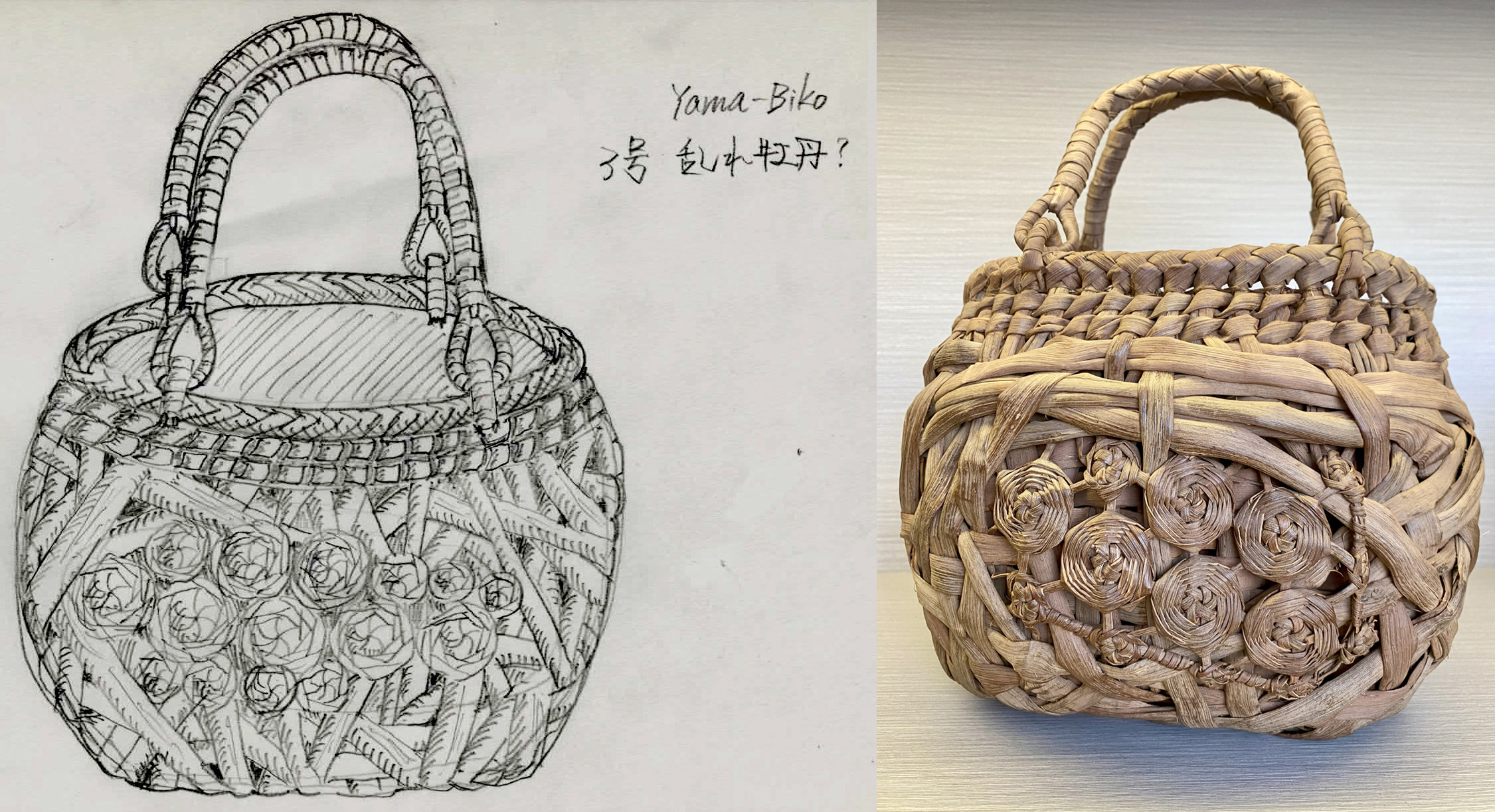 船生さんは、籠を編む前に、まずデザイン画を描く。