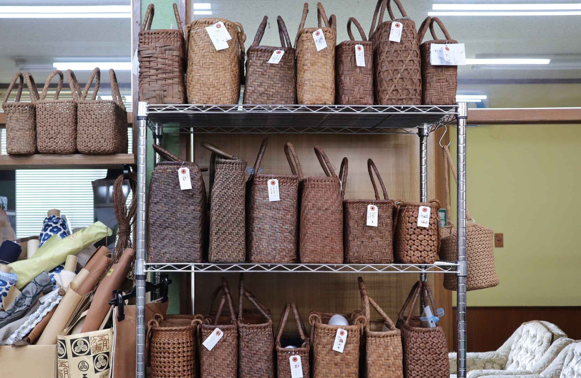工房では籠バッグの修理も請け負っている。船生さんは自分の作品に限らず、他の作家の籠も引き受ける。