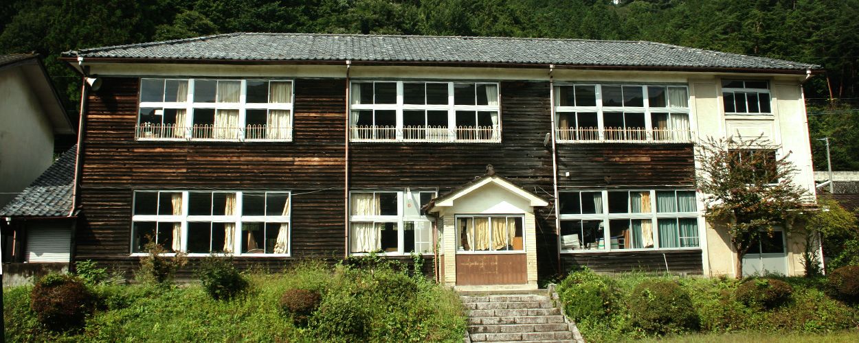 2001年に廃校になった小学校。校舎にはキツツキがあけた穴が無数にある
