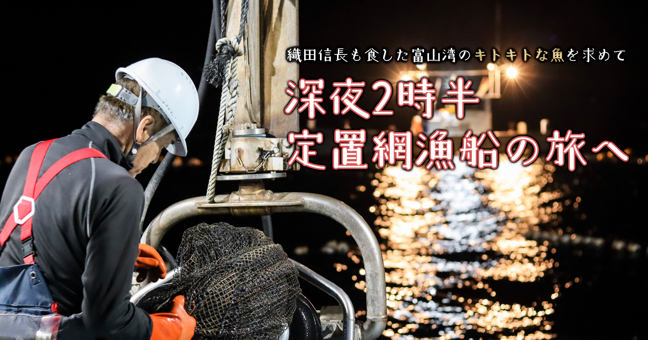 キトキトとは北陸の方言で「新鮮」という意味だ。過酷な経験を通して食す、キトキトな魚たちはどんな味がするのだろう。その答えを求めて、人の気配が消える午前2時半、私は能登半島にある鹿渡島(かどしま)の定置漁場へと向かった……。