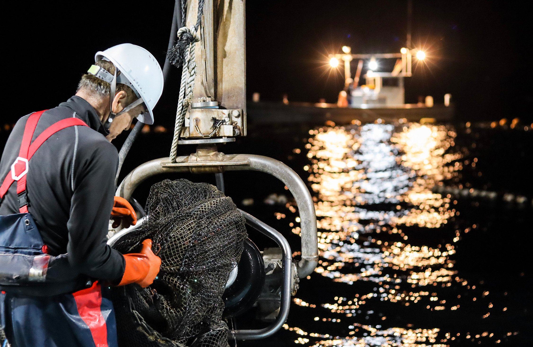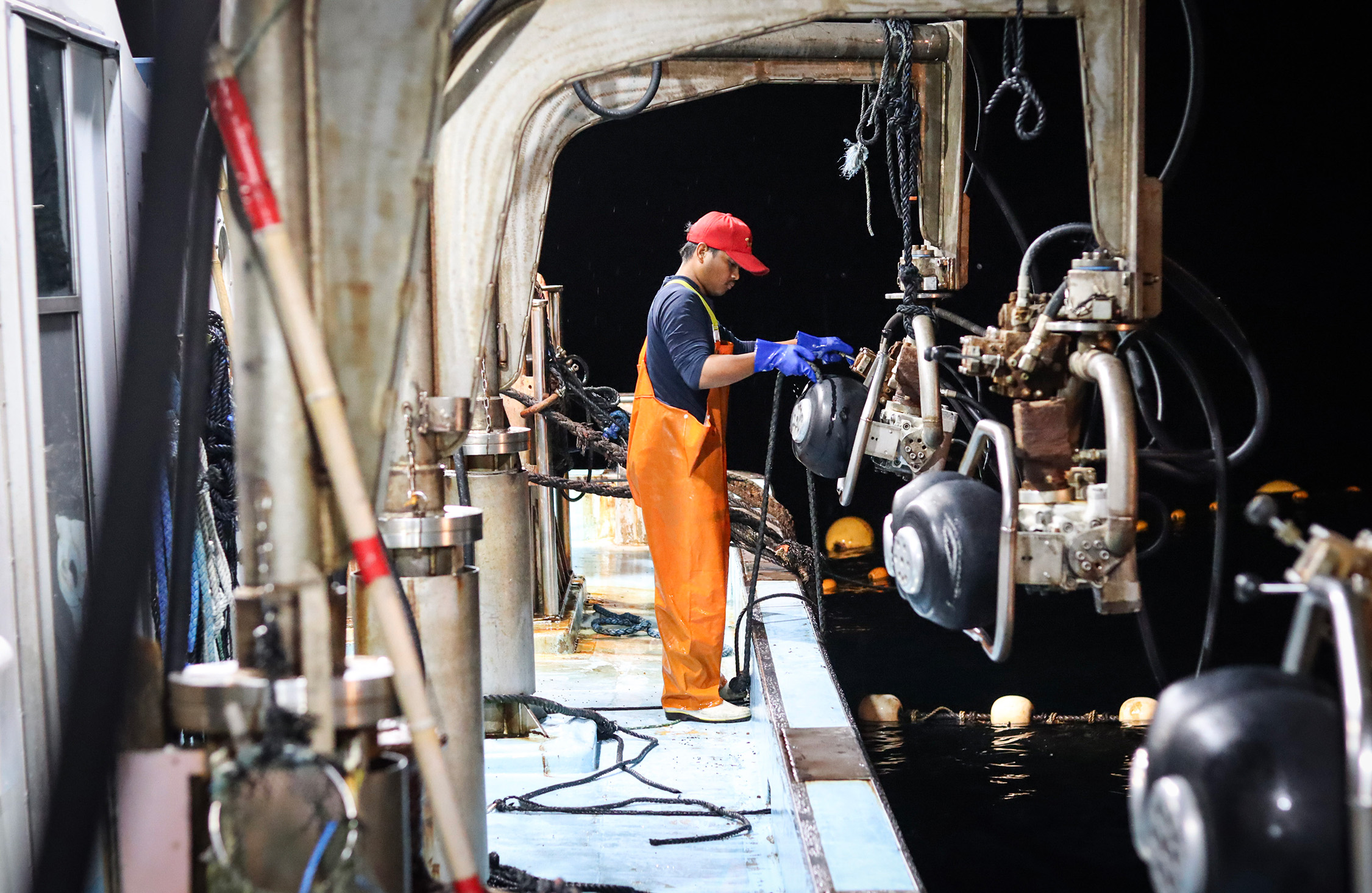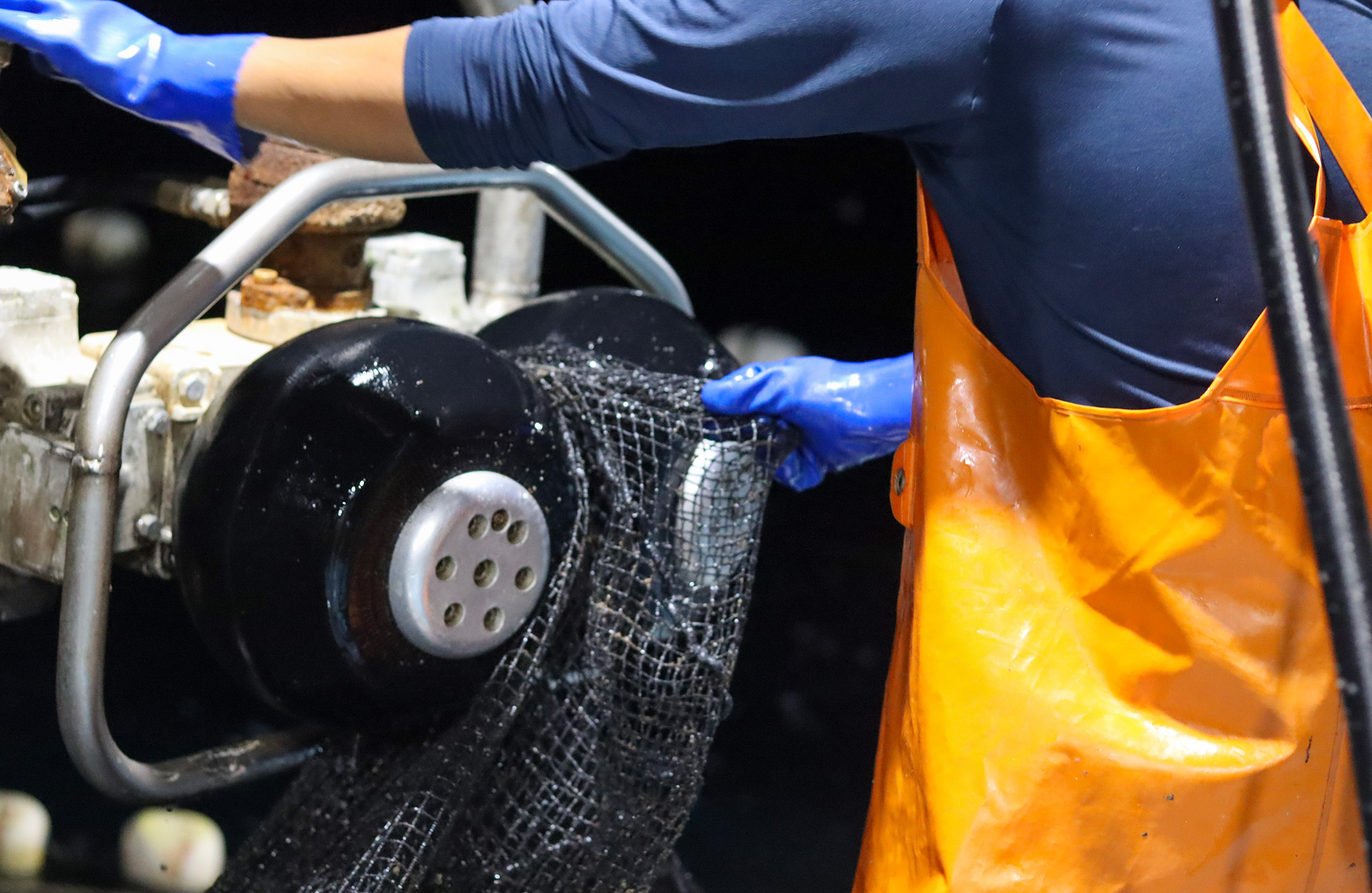 グオオンオンオンオンーー網を巻き上げる機械が稼働する。船員たちは慣れた手つきで無言のまま、網を下ろしていく。