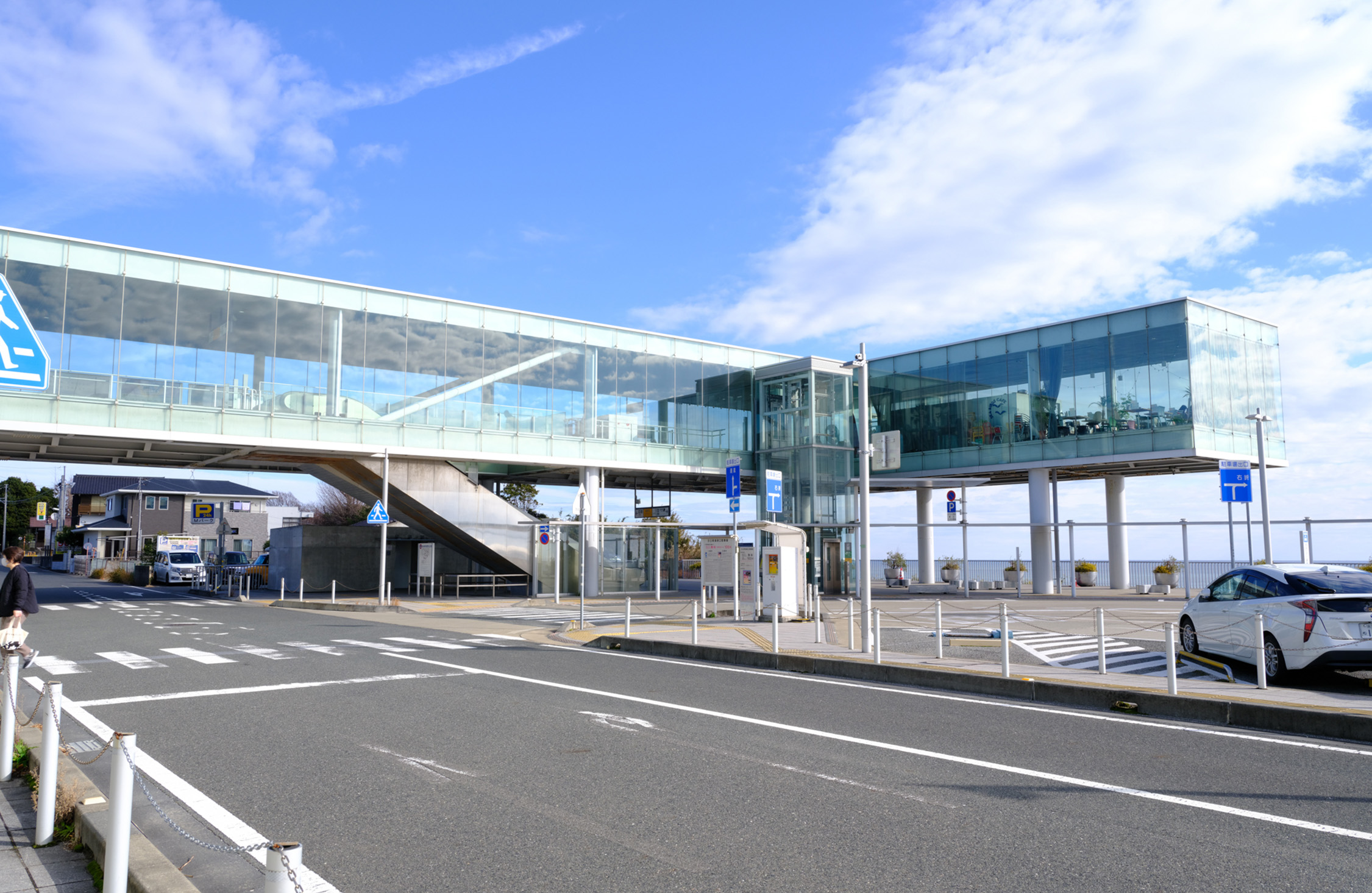 ガラスの箱が浮かぶようなJR日立駅の橋上駅舎。日立市出身の建築家・妹島和世さんによるもの