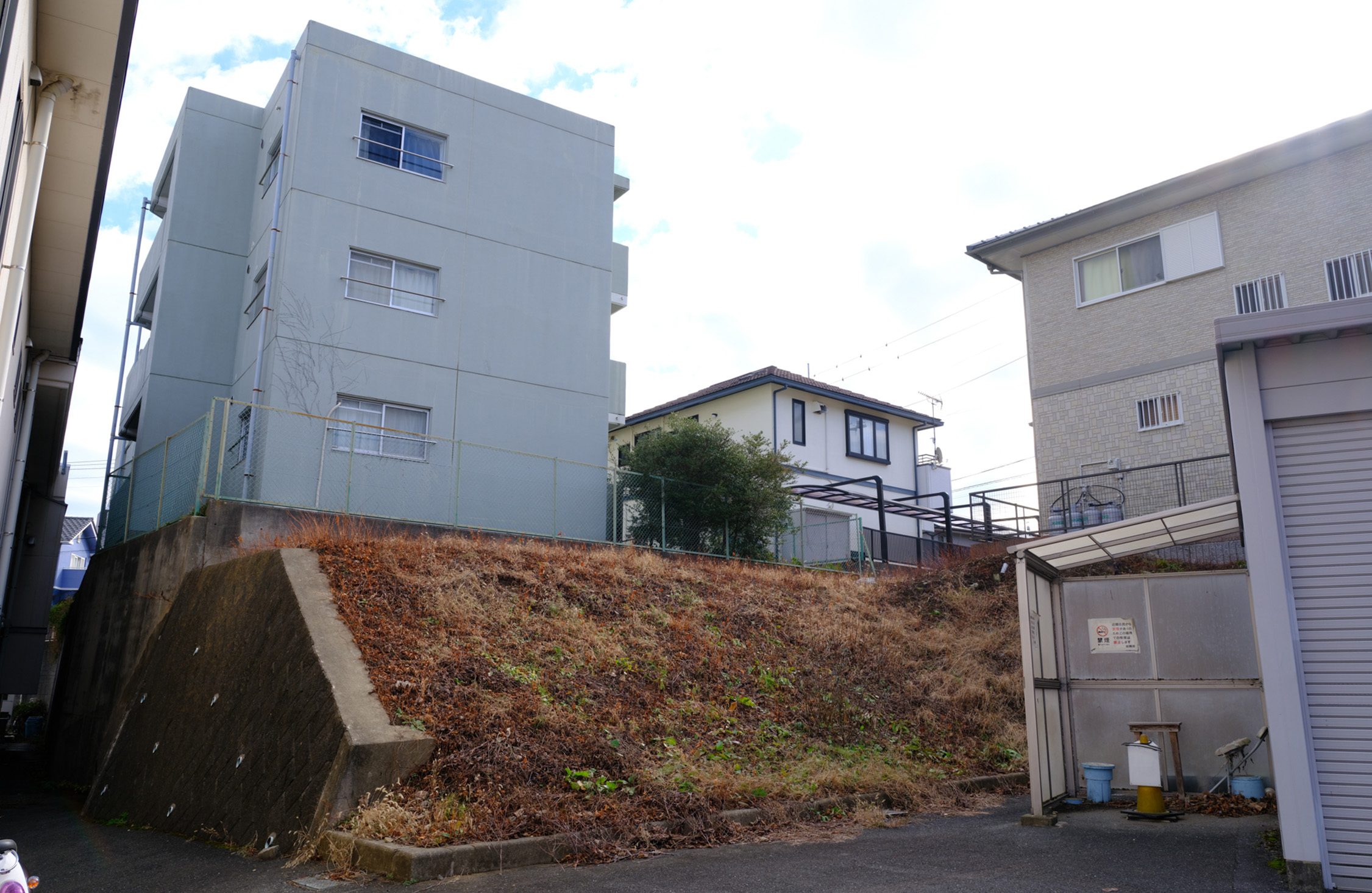 そのまま進んでいくと、日立市役所のすぐ手前で、はっきりと鉄道の遺構と確認できる場所にたどり着いた。それが鉱山電車の築堤(堤防を築くこと、または築いた堤防のこと)跡である。距離は短いが、しっかりと鉄道の築堤だとわかる形状で、実際にここを鉱山電車が走っていったのかと思うと、なんだか感慨深い。