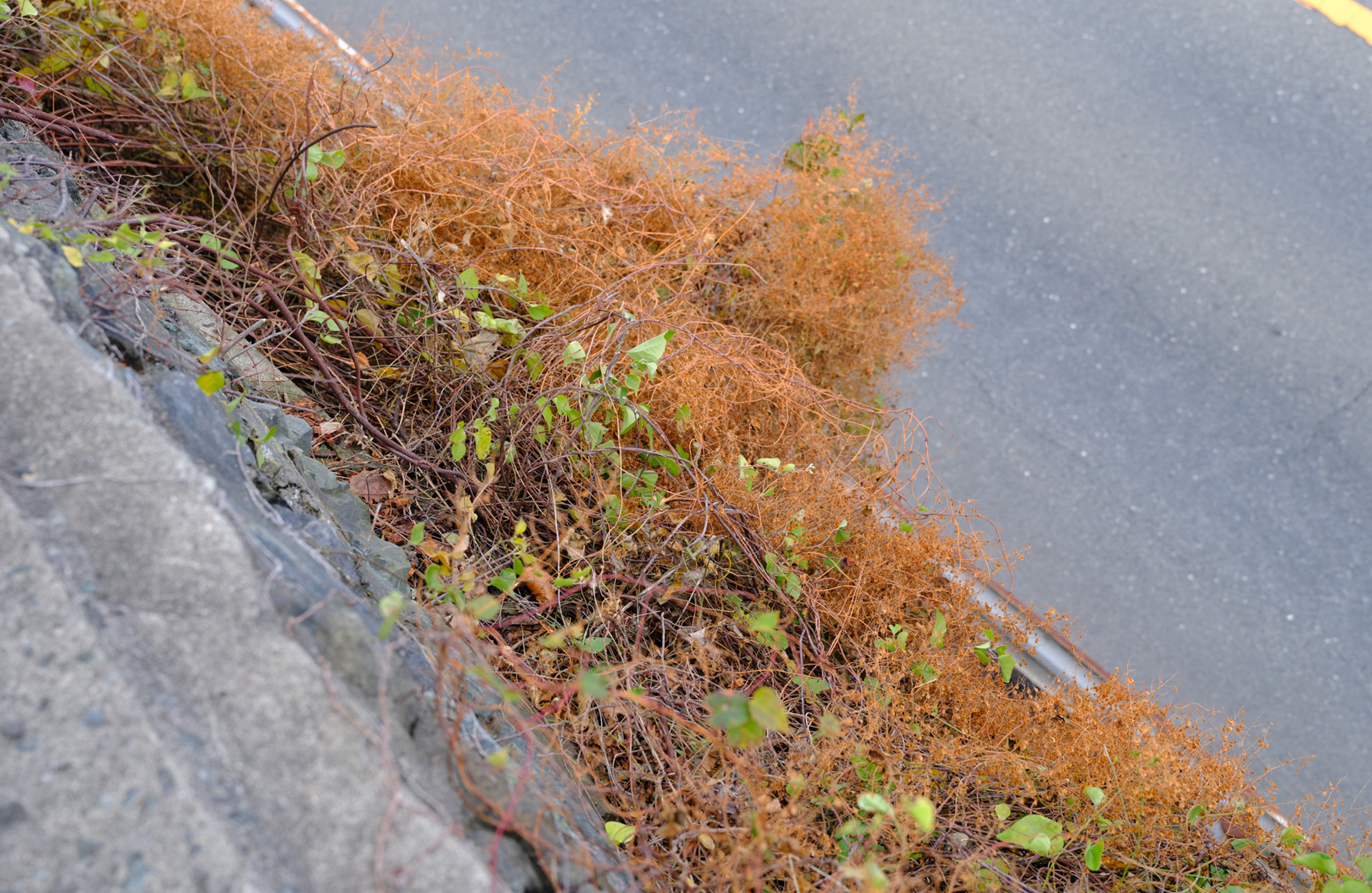 諏訪台を下り、「芝内停留所」を目指して、どんどん歩く。わたしたちが歩いている線路跡はかなり高い位置にあったが、数メートルほど下り、やがて県道36号と合流した。