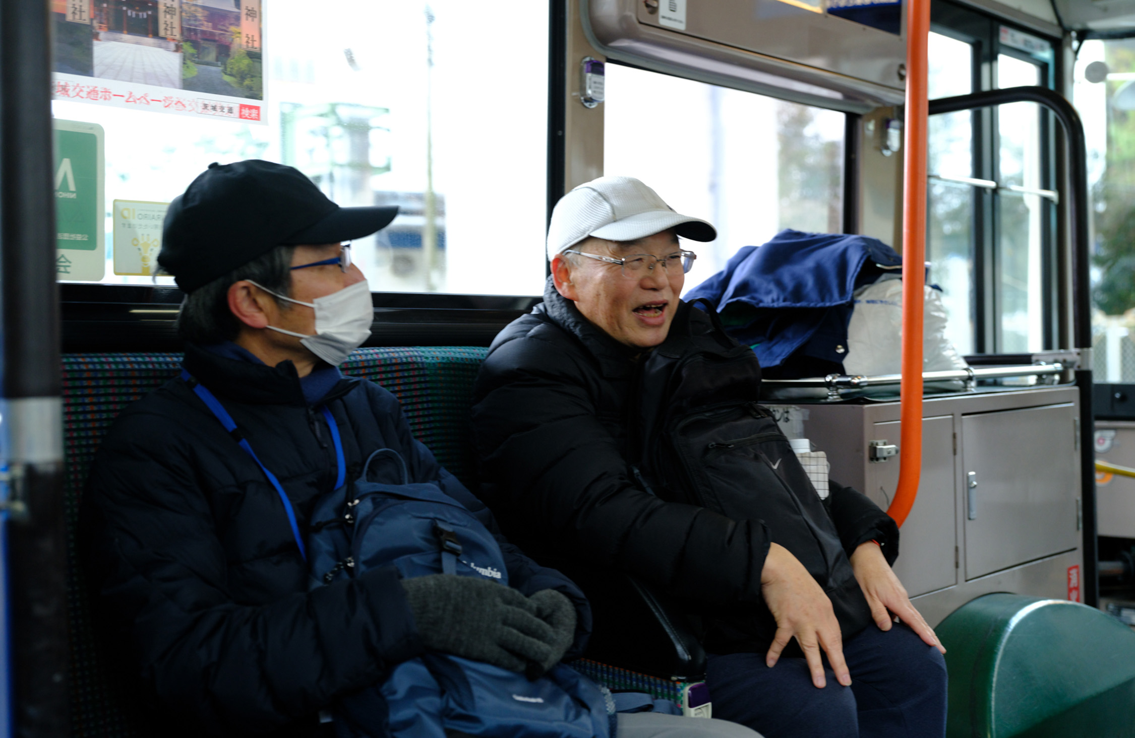 バスは今日一日かけて歩いた6キロの道のりを軽快に走り、20分足らずで駅へと辿り着いた。バスの中で、ジオネットメンバーの伊東和彦さんが「いやー、面白かったですねえ」と、笑顔を見せた。正木さんも嬉しそうだ。本当だ。今は全くない線路が、まるで見えるような、その上をひたすら歩いた、そんな一日だった。