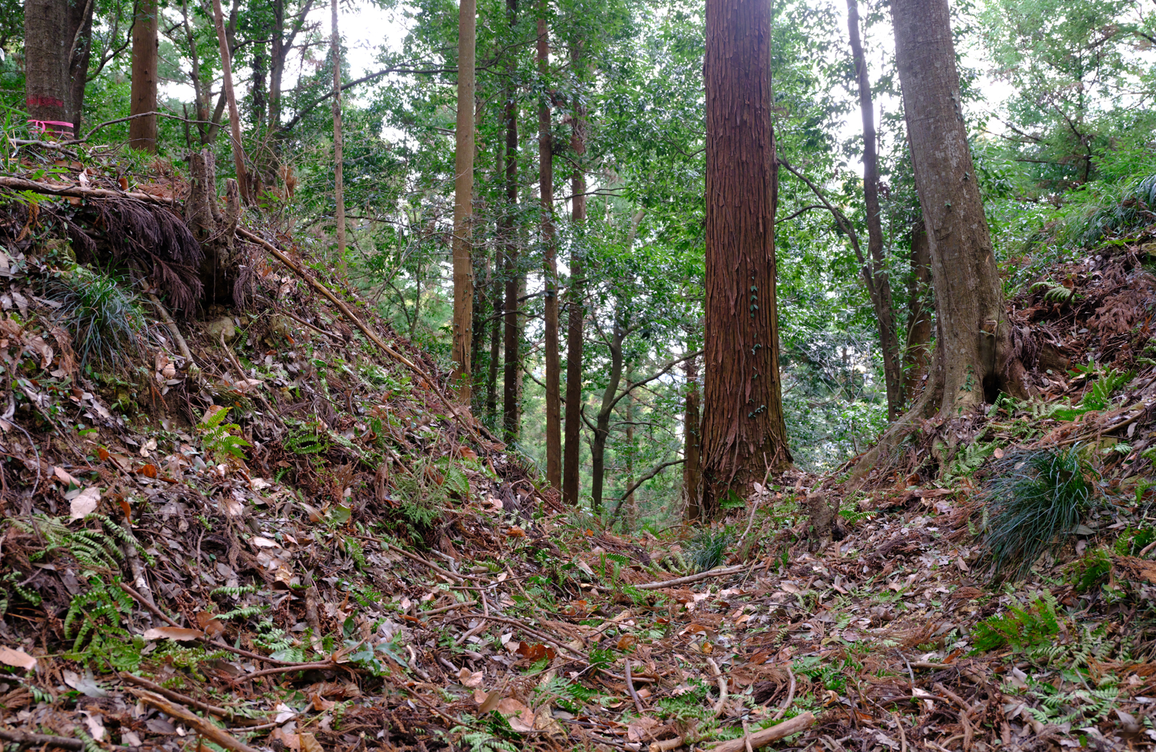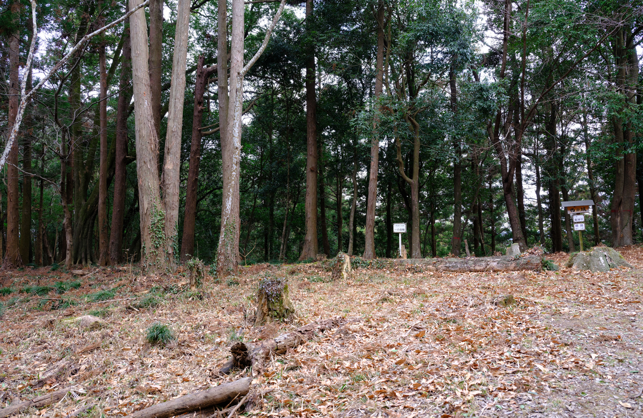 しかし現在では城巡りする人のために、物見台からの景色がよく見えるよう、久米城跡保存会では斜面の木を伐採している。石井さんは淡々と「つい先月もそこの倒木を一人で切っていました」と、整備の苦労を語った。木は成長し続けるので、城の整備には終わりがないというわけだ。