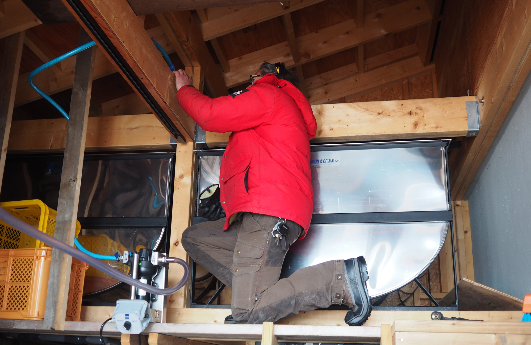 数十本のカエデの樹にチューブがつながれていて、そこから麓に置かれた大きなタンクに樹液が流れ込むようになっているのだ。これなら、樹液が溜まったバケツをひとつひとつ回収する必要がなく効率化だ。