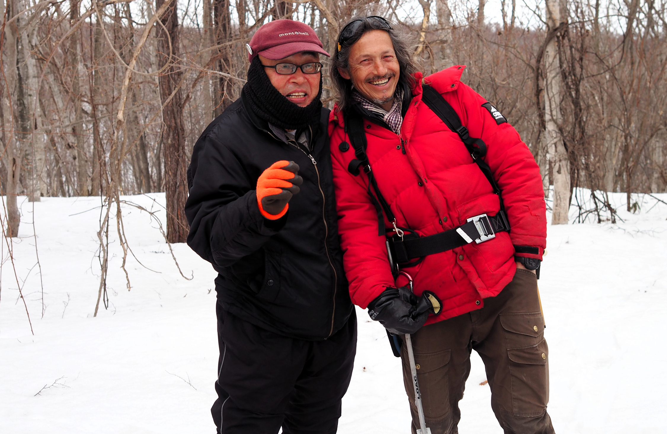 この作業……想像以上にハードだった。バケツに半分でも約10キロ。スノーシューズがなければ太ももまで埋まるような雪深い山のなか、絶対にこぼしてはいけないと慎重に運ぶ。あっという間に、体力も精神も削られた。でも、泣き言を言っている場合じゃない。ギャニオンさんは鼻歌まじりでどんどんバケツを運んでいる。2月の北海道、よく冷えた山中で汗をかいてハアハア言っている僕に、ギャニオンさんは笑顔でこう言った。
