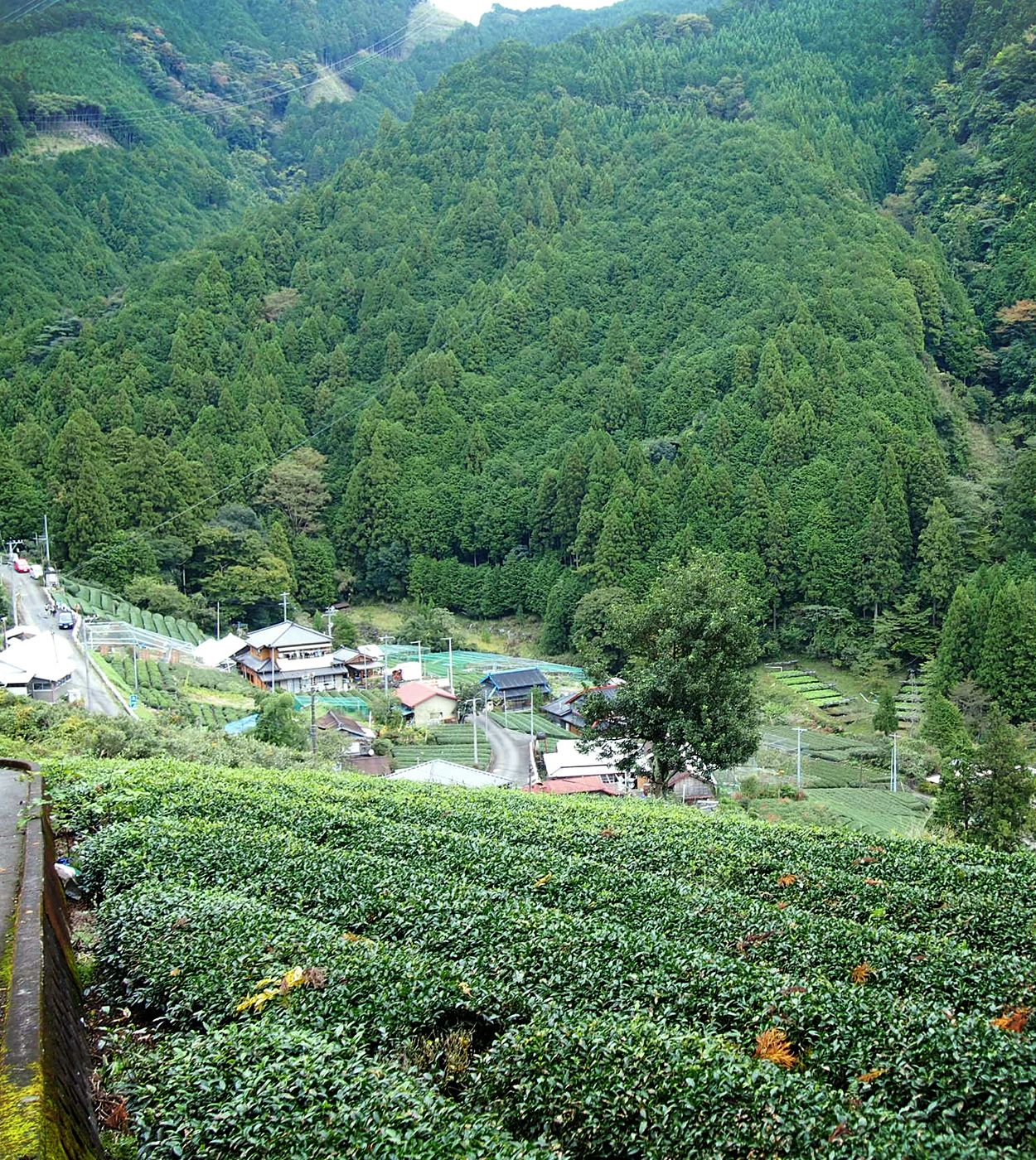 10時に静岡駅前を出発して、到着したのが10時50分だから、だいたい1時間の道のりだ。東京からの新幹線の移動時間1時間も合わせると、たったの2時間で私たちは山と茶畑に囲まれた深緑色の世界に到着したのだった。