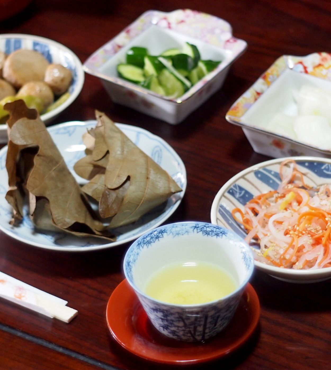 柏餅に里芋の煮物、酢のものやお漬け物など、