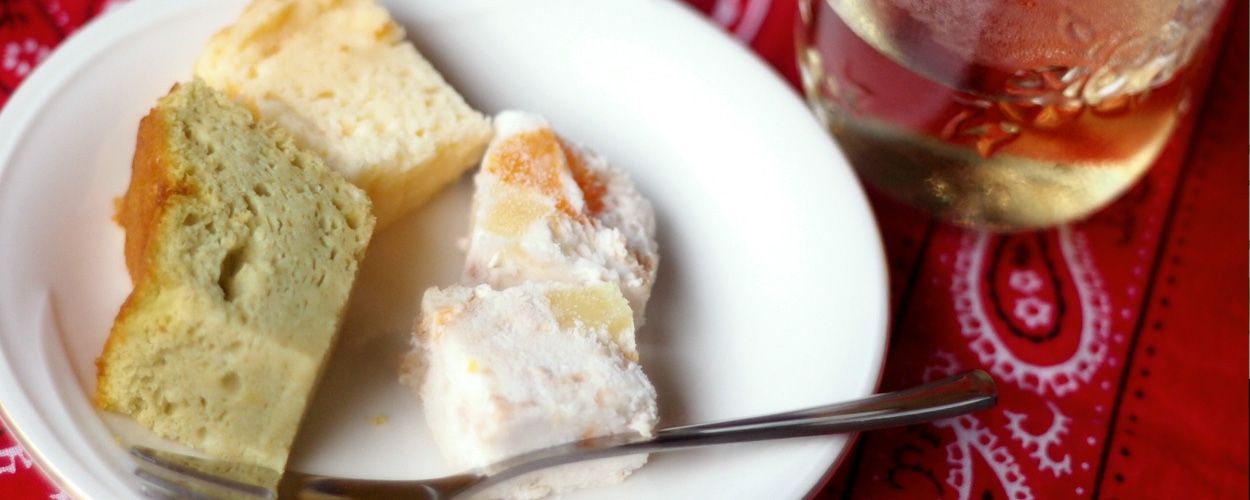 ケーキとフローズンヨーグルトには、ミントティーのサービスも