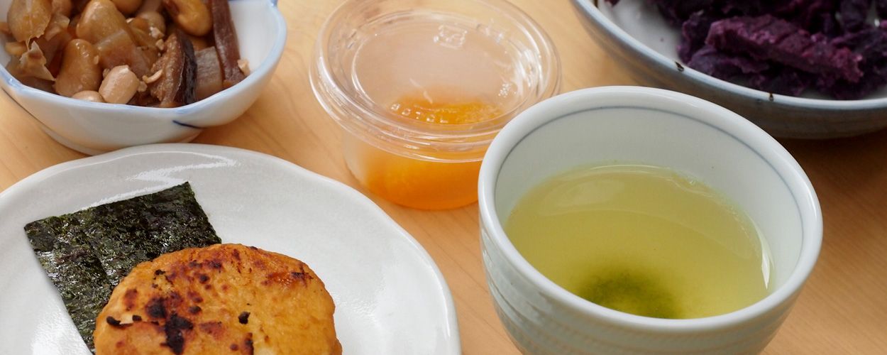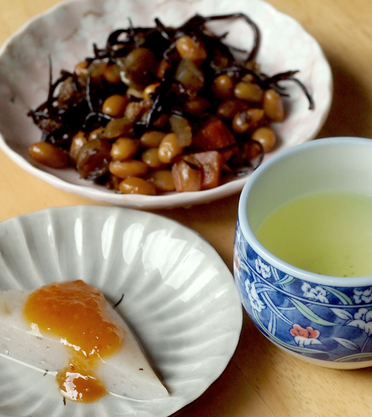 話を聞いている間に、目の前のテーブルには次々にお惣菜の鉢が並べられていった。内容は、柏餅に里芋の煮物、お漬け物など、とてもお茶請けとは思えないものばかり。とうとう5鉢になり、驚いて目を白黒させていると「だから言ったでしょう?お茶請けでお腹いっぱいになりますよ、って」と、内野さんはにやりと笑った。
