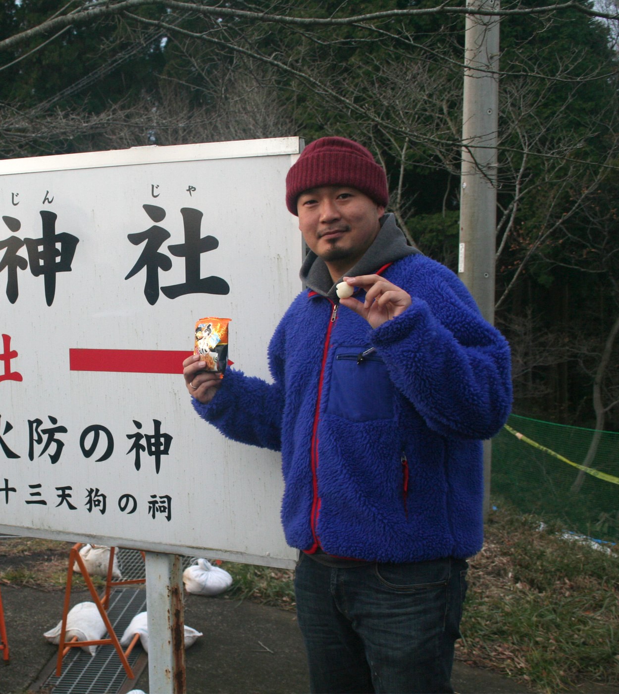 なぜお供物を? という疑問の答えは後々、明らかにしよう。あまりにもグイグイと上着を引っ張られるので、それどころじゃない。振り向いて「大人げないことはやめなさい!」と怒鳴りたい気持ちになる。一人じゃ寂しいという僕の極私的事情に同情して東京からわざわざ一緒にきてくれた女の子の友人Kちゃんを放ったらかし、群衆が押し寄せる前から祠の前に駆け付け、最前列をキープしてご満悦だったお前も十分に大人げないという意見は無視させて頂く。この場で「分別」とか「体裁」とかを気にしている“オトナ”がいたら、こう言ってやりたい。