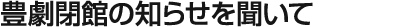 「豊劇が閉館するって話を聞いたのは、2012年3月初旬のことでした」