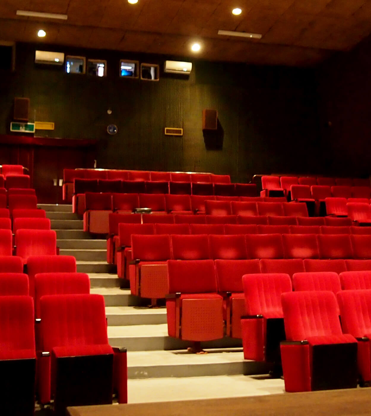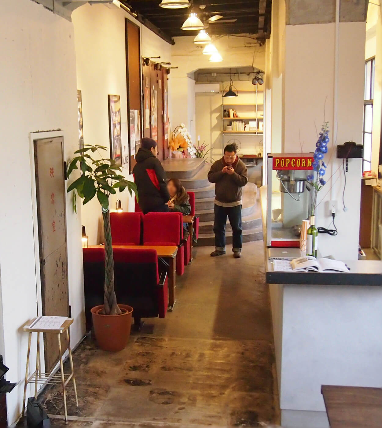豊劇は地域の文化拠点として、日中はカフェ、夜間はバー、また、小ホールはイベントに使えるような形にしたり、ロビーも様々なワークショップに対応できる空間にする必要があった。そして忘れてならないのは、そこが映画館であるということ。