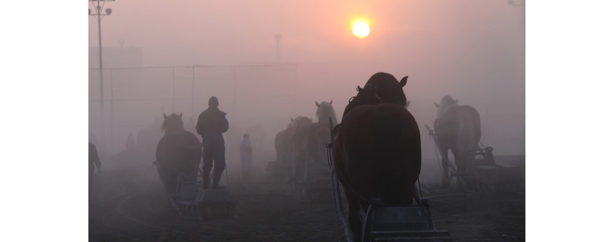 朝靄立ち込める早朝から始まる馬の調教風景(提供:ばんえい十勝)