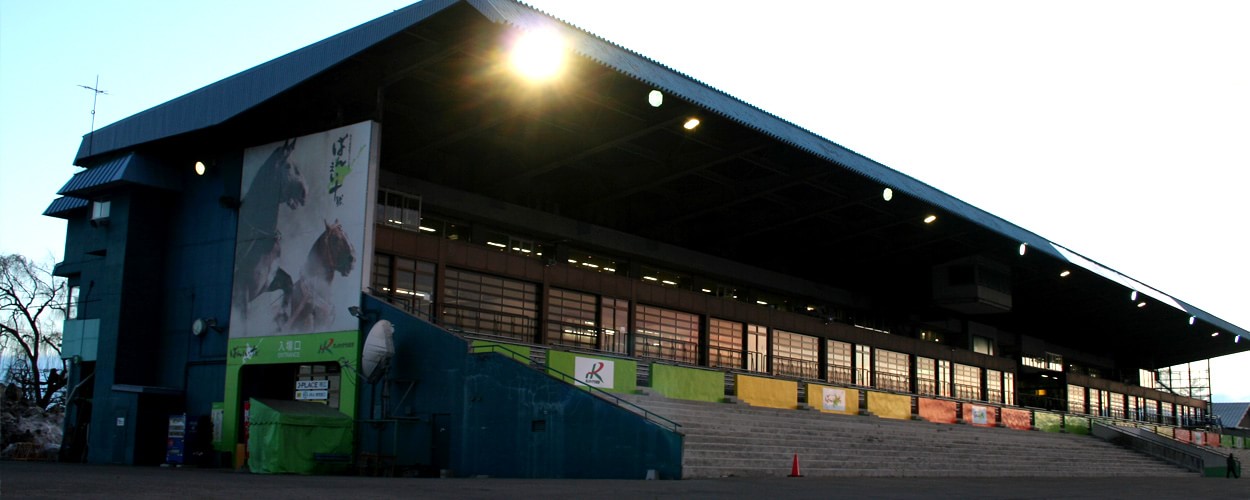 帯広競馬場の夕暮れ。3月22日に開催されたばんえい競馬最大のレース「ばんえい記念」では約4200人のファンが詰めかけた