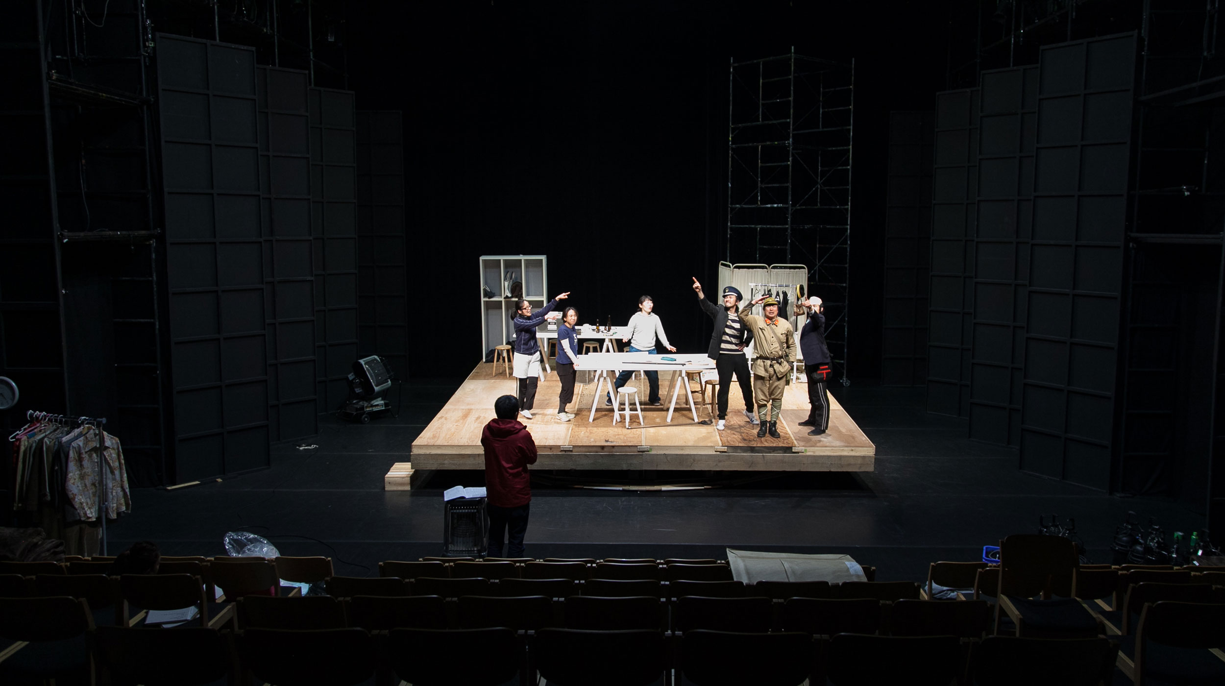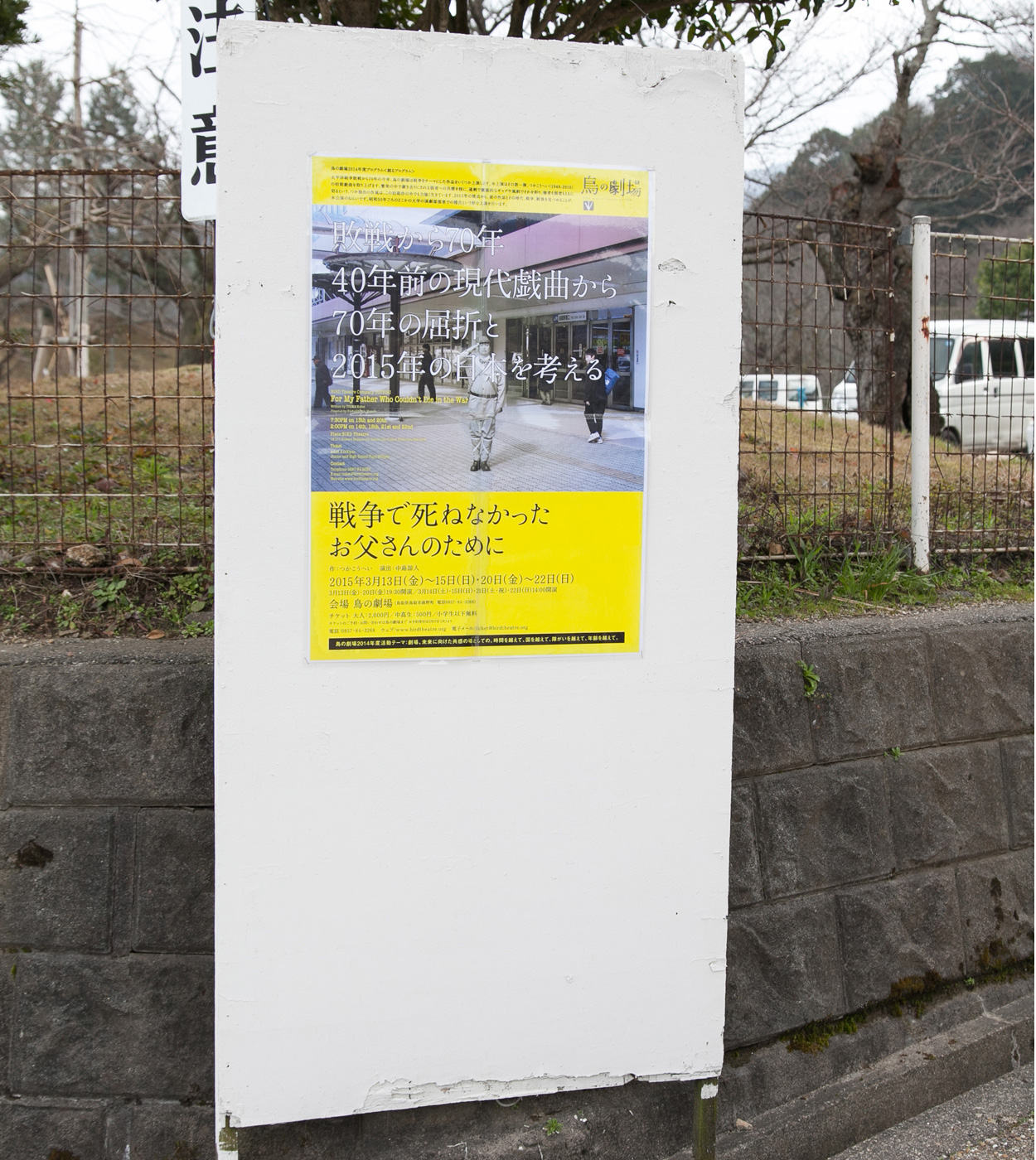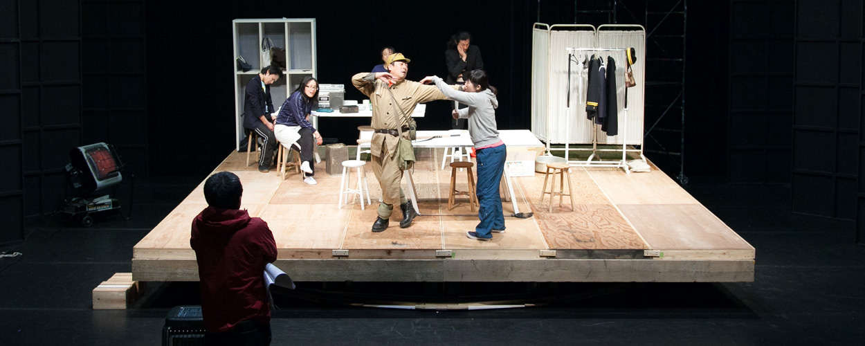 さて劇場では月末に迫った公演「戦争で死ねなかったお父さんのために」の稽古が行われていた。つかこうへいの初期戯曲でもあるこの作品を公演の演目に採り上げたのは、もちろん理由がある。戦後70年にあたる今年は、戦争をテーマにした作品をいくつか上演するのだという。
