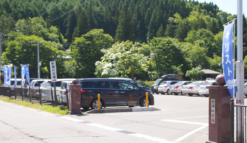 祭りの日は交通規制がかかっているので、新郷村に着いたあとは、役場から出ている無料シャトルバスでの移動となる。