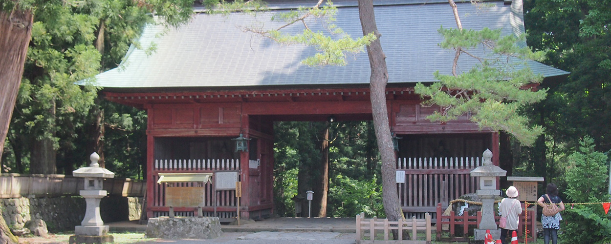 そう言って先達が指差したのは、どっしりとした朱塗りの門。「隋神門(ずいしんもん)」という名のこの門は、出羽三山詣での正式な入り口となっている。