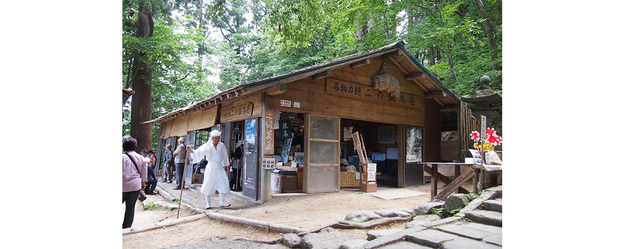 そこは、歩き疲れた参拝客が集まるお茶屋さんだった。先達は畳に腰掛け、名物の力餅を注文した。店でてきぱきと働くおばあちゃんは、御歳80歳。あの急な階段を、毎日この店まで登って来ているという。なんという健脚だろう。