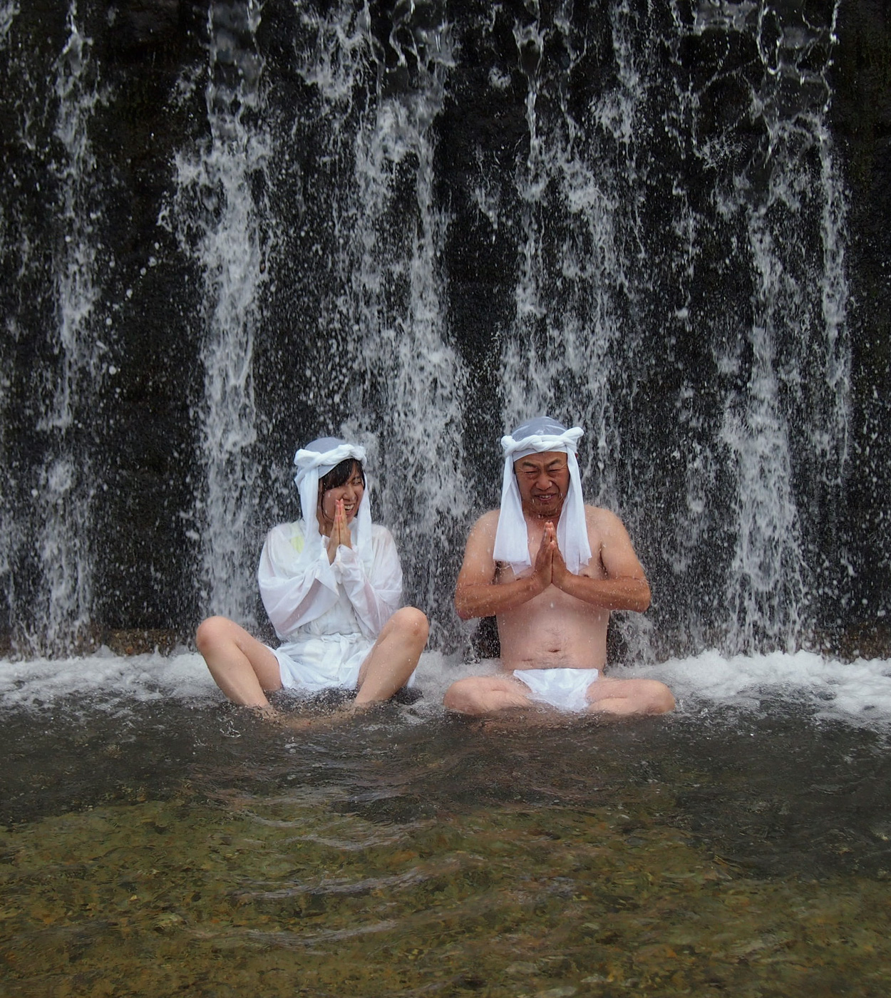 という先達に、滝の中で何度も「まだですかー!?」と叫んでいたのだが、先達が首をたてに振らないので20秒経っていないものだと思っていた(自分で時間を数える余裕はなかった)。しかし、実際はもっと長い時間(多分1分くらい)入っていたらしい。私の必死な問いかけはまったく言葉になっていなかったようで、「ずっと『まだですか!?』って言ってたんですけど……」と私が言うと、2人は「え、そうだったの?」という顔をしたのだった。