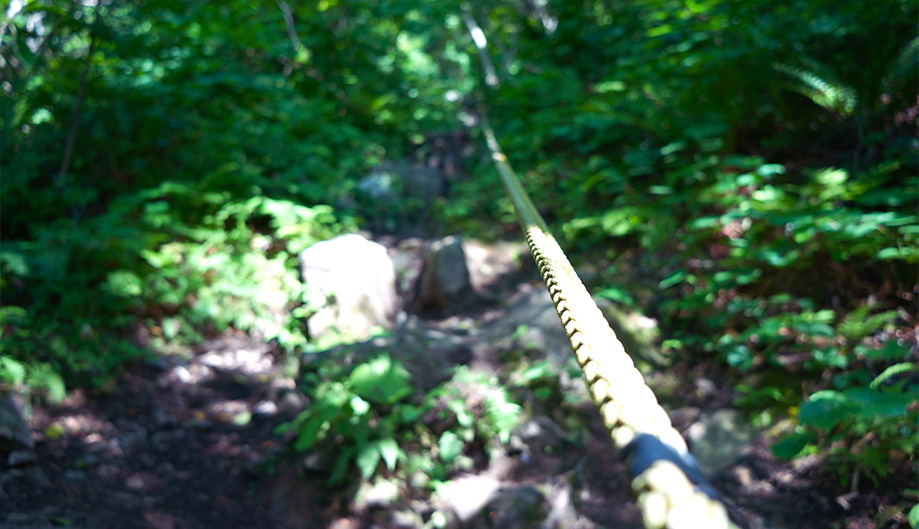 片手でロープを掴まないと登れない急激な山道。腰を落ち着けたくても座れる平面すら見つからない。おまけに、アブが僕の胴回りを旋回しながら追跡してくる。ひとたび歩みを止めたら、すぐにでも刺されそうだ。ある日 森の中 クマさんに……なんて冗談でも歌えない。やっとの思いで森を抜けると、ダイハードな絶壁が待っていた――なぜ僕はこんなところに――。アブと同時に後悔が襲いかかってきた。