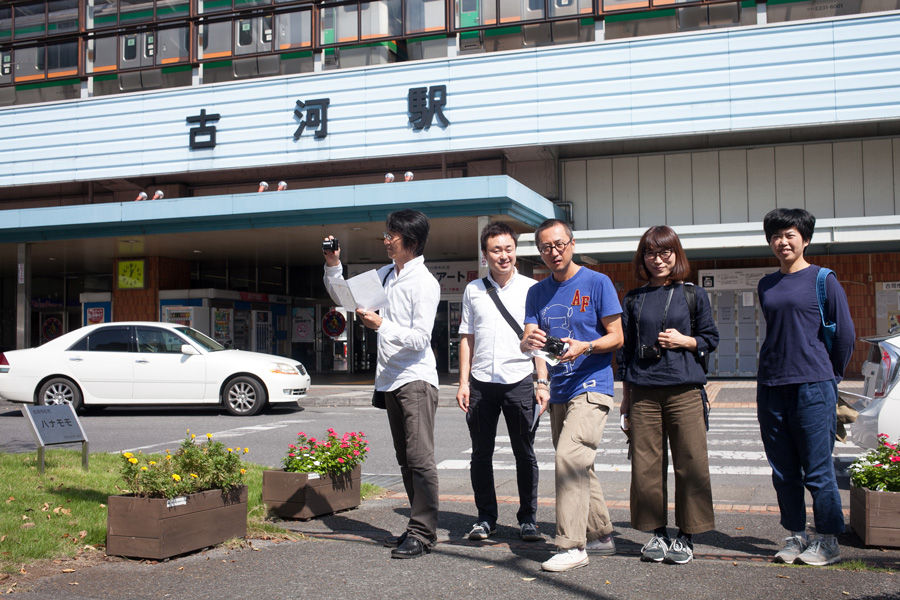 秋晴れのシルバーウィーク。私は再び古河へとやってきた。加藤さんのワークショップ「まちのみかた」に参加するためである。今日の参加者は7名。古河商工会議所職員の関根さん夫妻、そして関根さんが住むビルの2階で探偵事務所をやっている顔出しOKの気さくな探偵、長谷川さん、通称・探偵さん(そのまま!)、それから私と友達でデザイナーのさおりちゃん、加藤さんの建築事務所の敏腕所員であり一級建築士の羽部律子さん、そして加藤さんである。