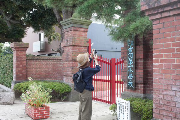 昔ながらの目抜き通りをまず歩く。古河市街を初めて歩く私とさおりちゃんは少し興奮していた。「観察する」という目的を持ってまちなかを歩きだすと、普段は目に留まらないふつうのものが、いかに輝いて見えてくることか! 建物ばかりではない。おもしろい看板や、古びた注意書き、道路にはみ出んばかりの植栽、洒落た造りのお店、用途が全くわからない道端の大きな石……、そんなものを見つけては、「あ、ここにこんなものがあるよ!」とシャッターを切っていく。見慣れた自分の町も、こんな風に歩いたら全く違って見えるのかもしれないなあ、ふと、そんなことを思いながら。